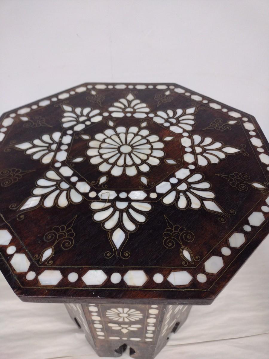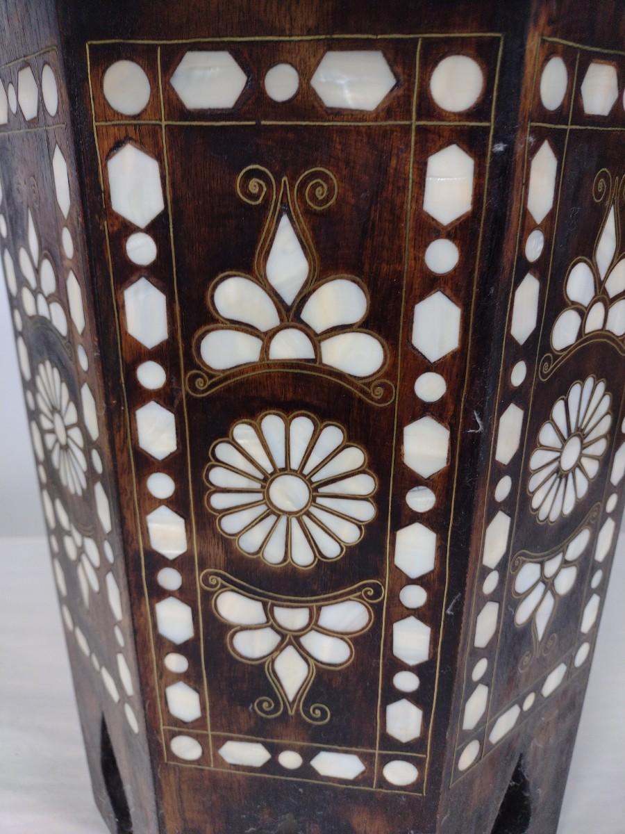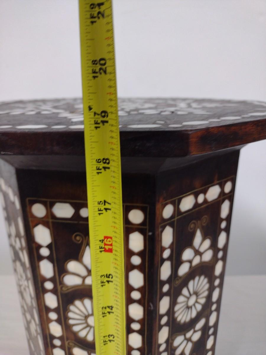 Egyptian Hexagonal Mahogany Finish Mother of Pearl Inlay Side Table