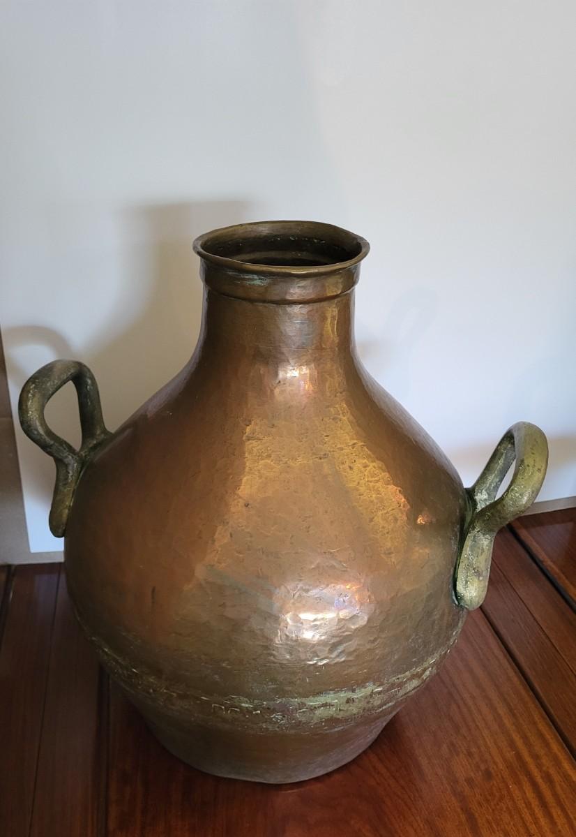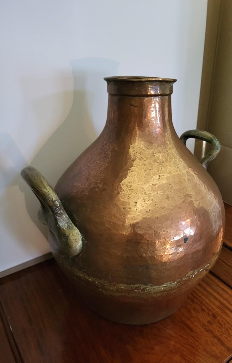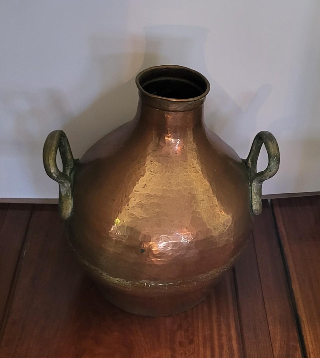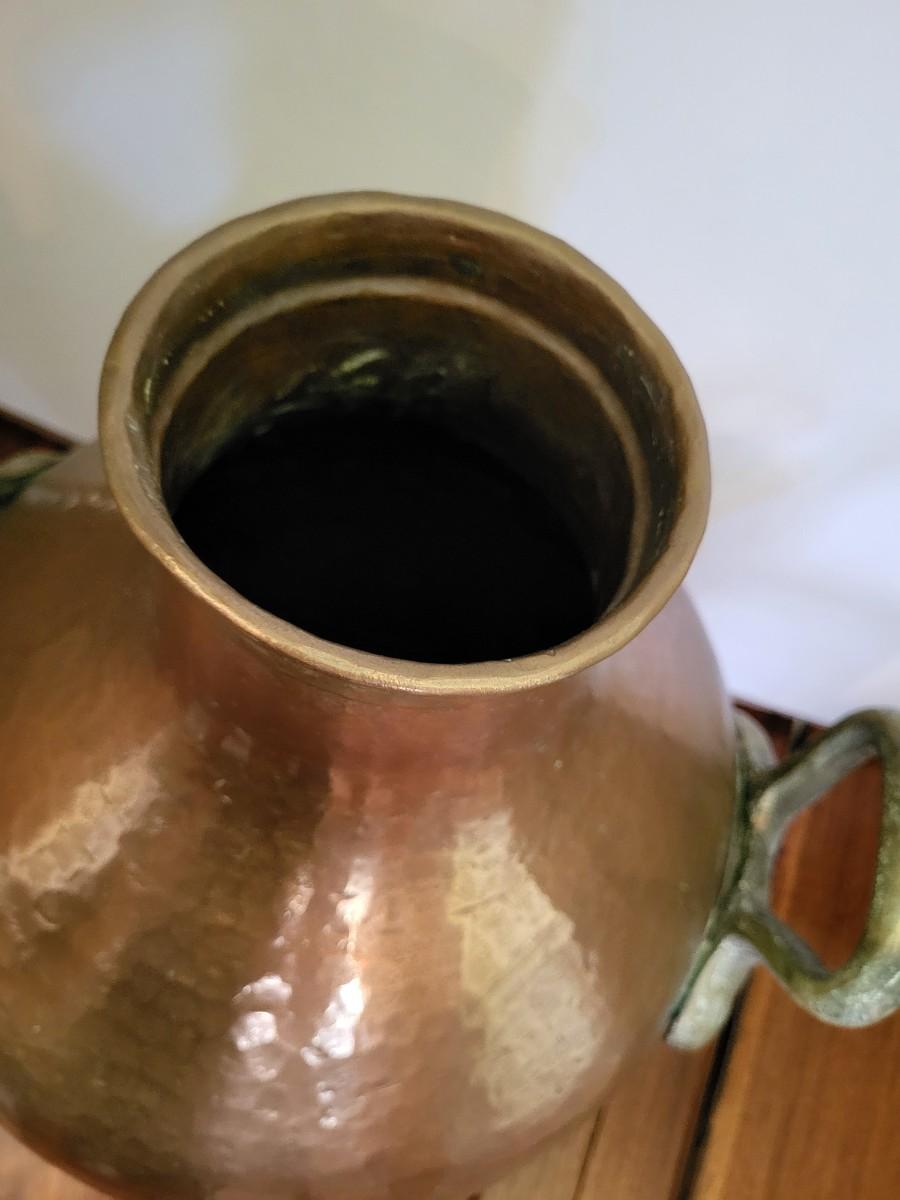 EGYPTIAN COPPER BEAN POT WITH BRASS HANDLES