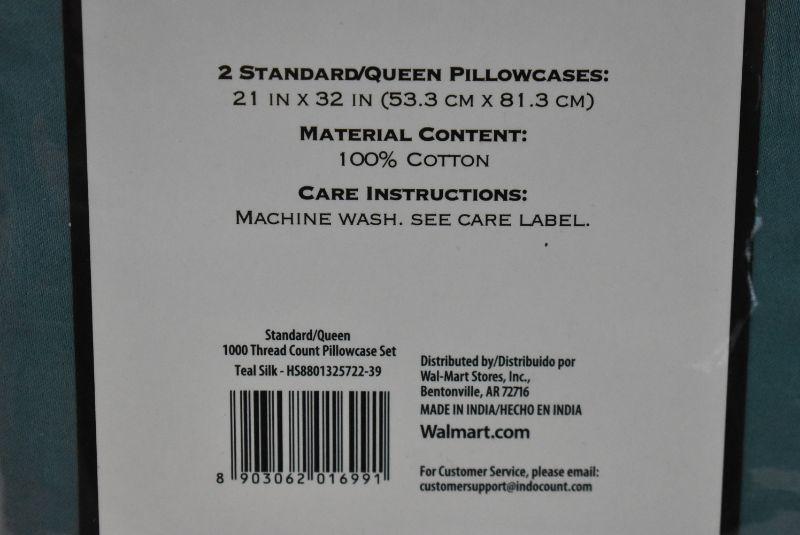 Hotel Style Egyptian Cotton 1000 Thread Count Bedding Pillowcases Collection, Standard/Queen Size, Teal Silk, 2-Piece Set - New