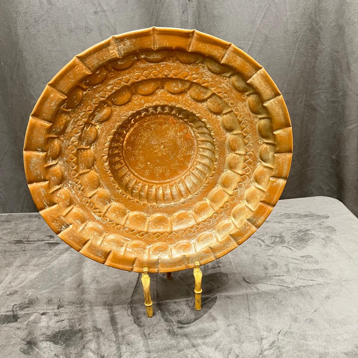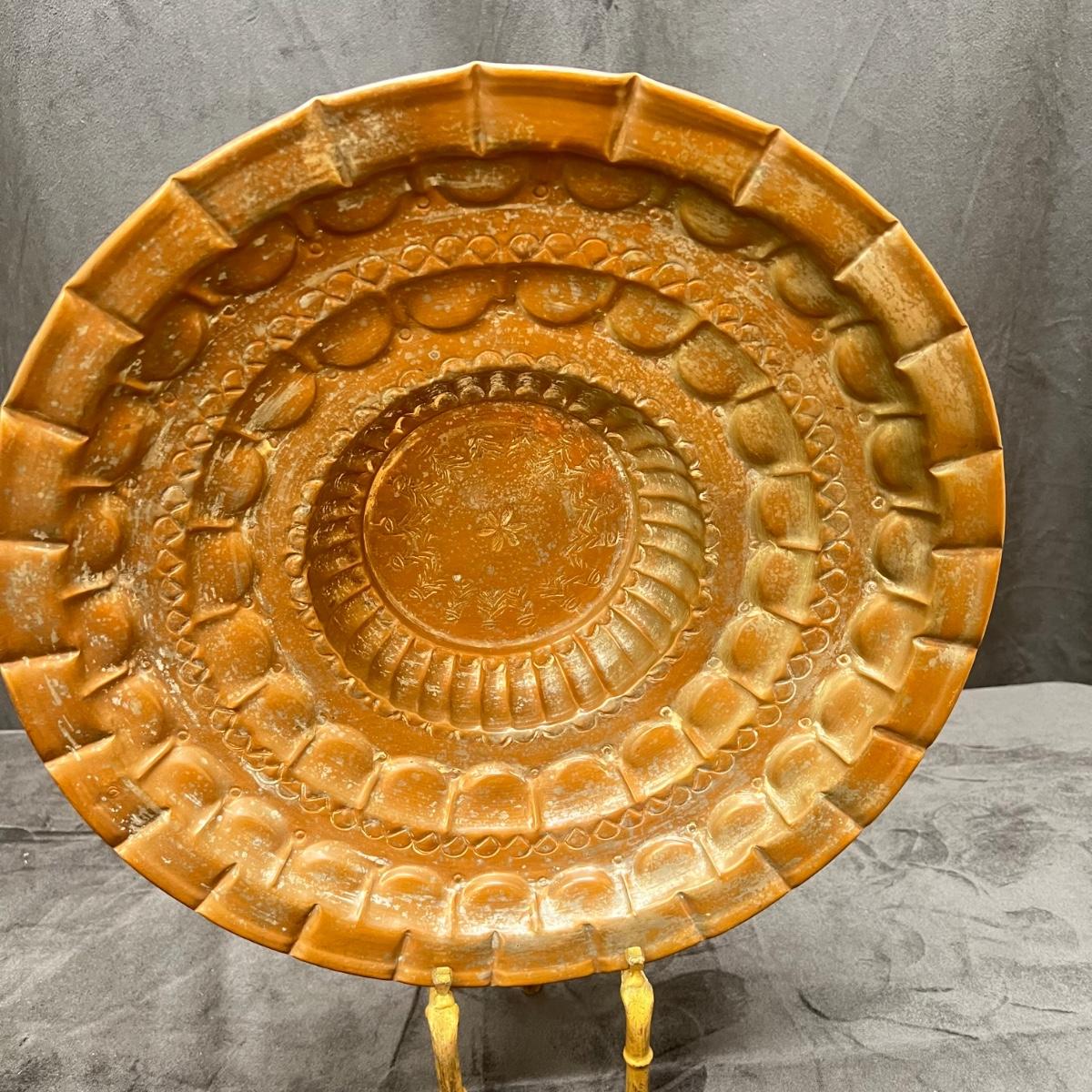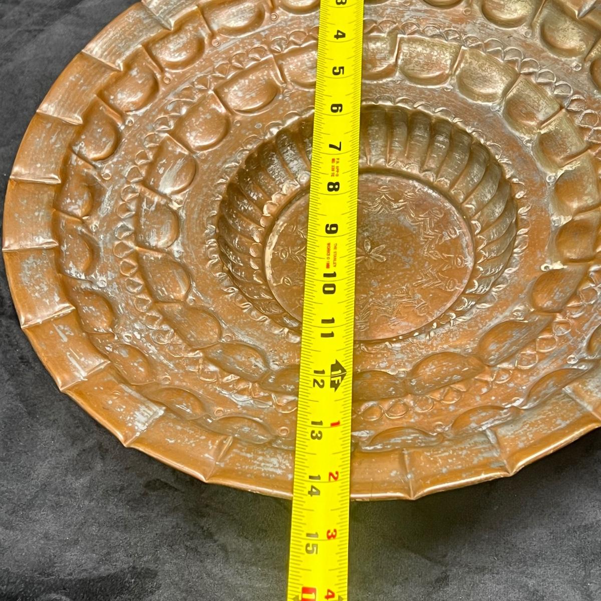 Large Egyptian Hand Hammered Copper Dish Mid-Century Modern Natural Patina