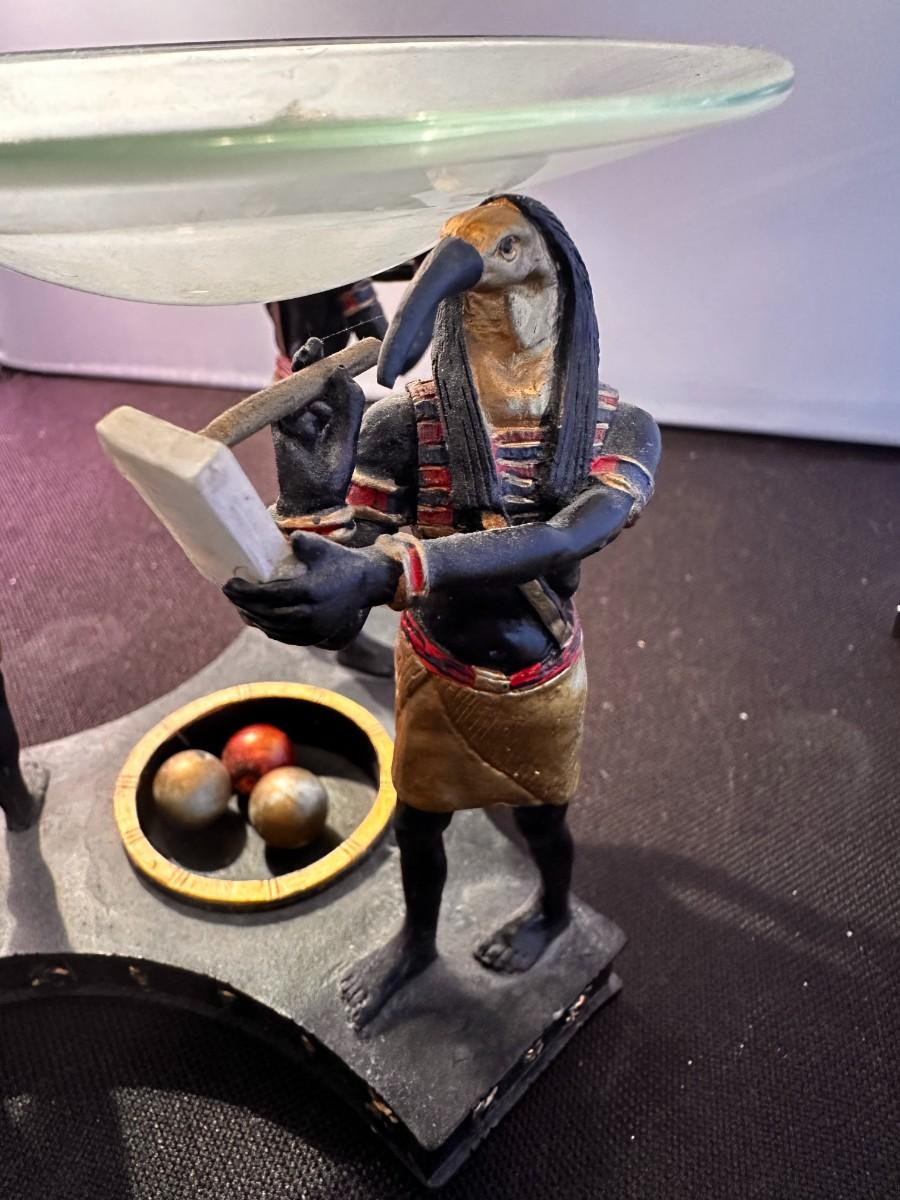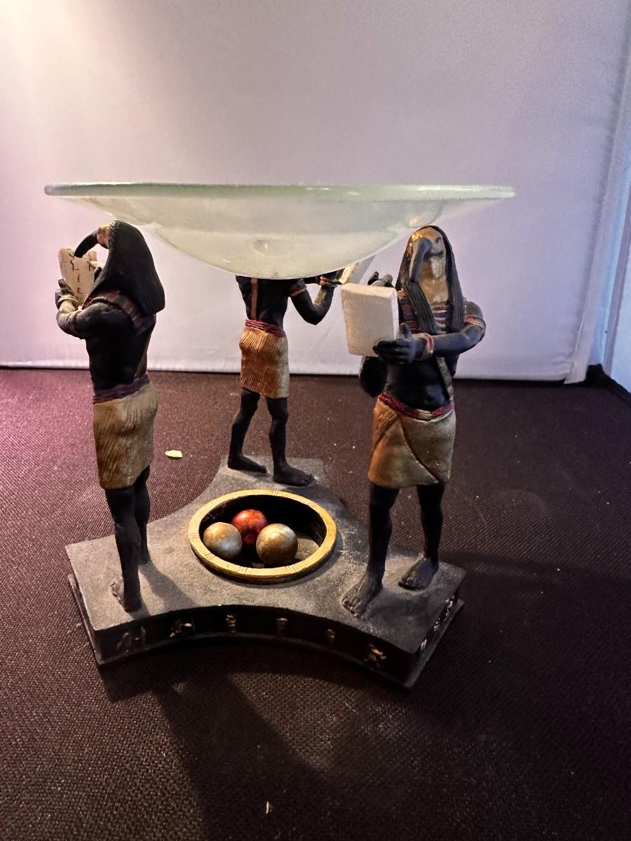 Crafted with intricate Egyptian motifs and symbols, this oil burner evokes the mystique and grandeur of the pharaohs and pyramids. The ornate detailing and craftsmanship bring a touch of luxury and elegance to any space, creating a sense of opulence and refinement.