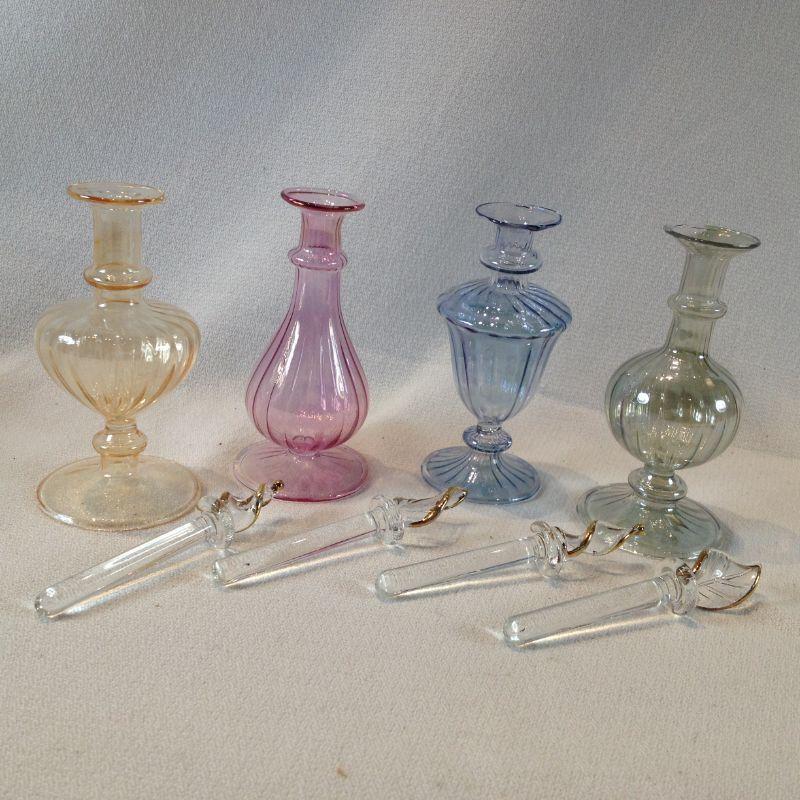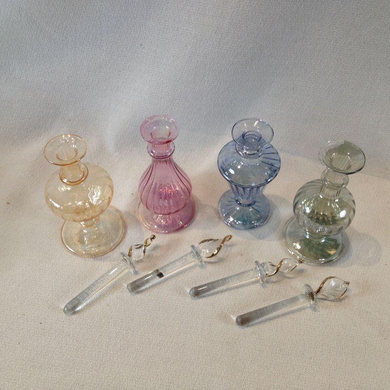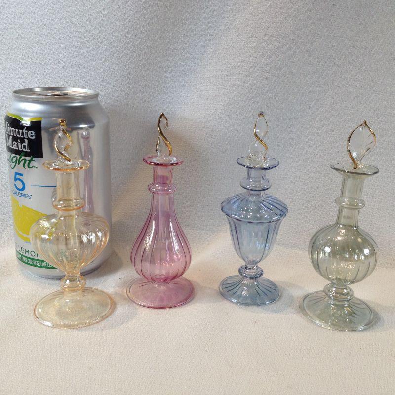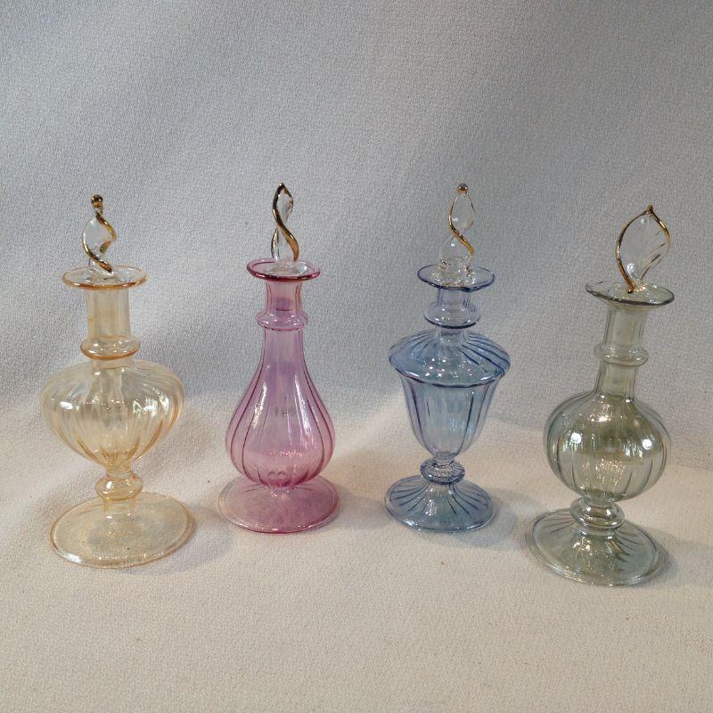 Cleopatra didn't own these four beautiful and delicate perfume bottles but winning this collection will help you feel as special as the Queen of the Nile. All have their intact stopper/dabbers. They are all in very good condition.