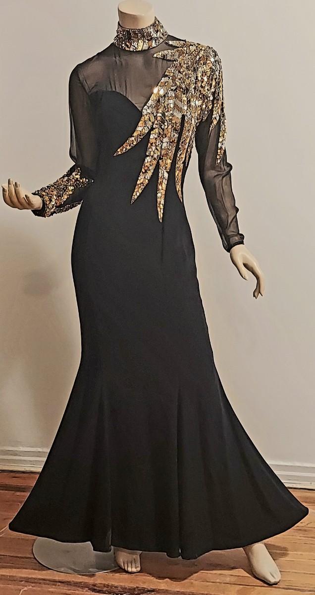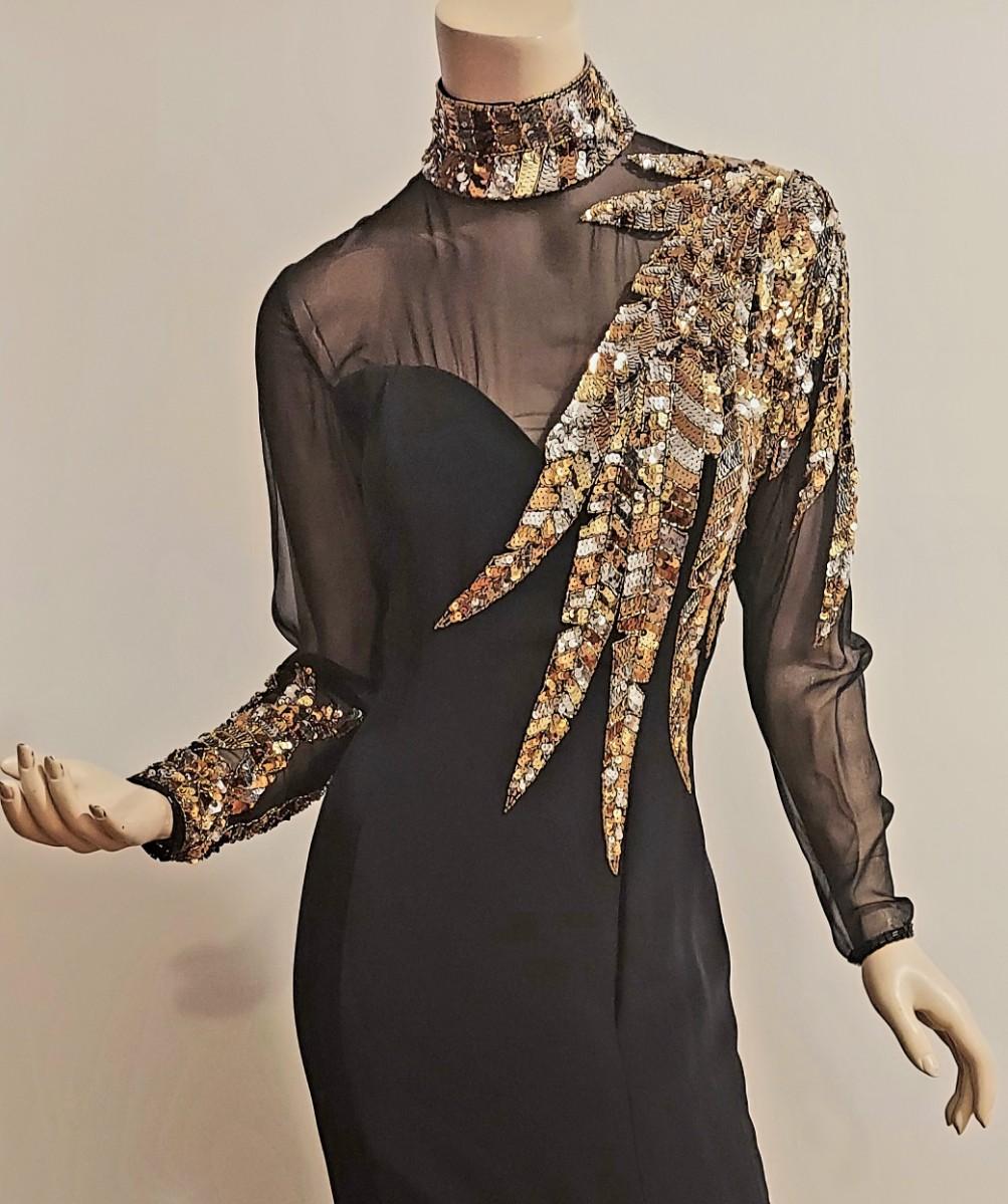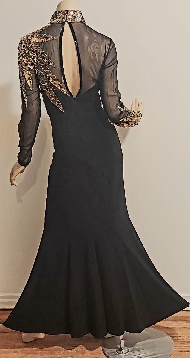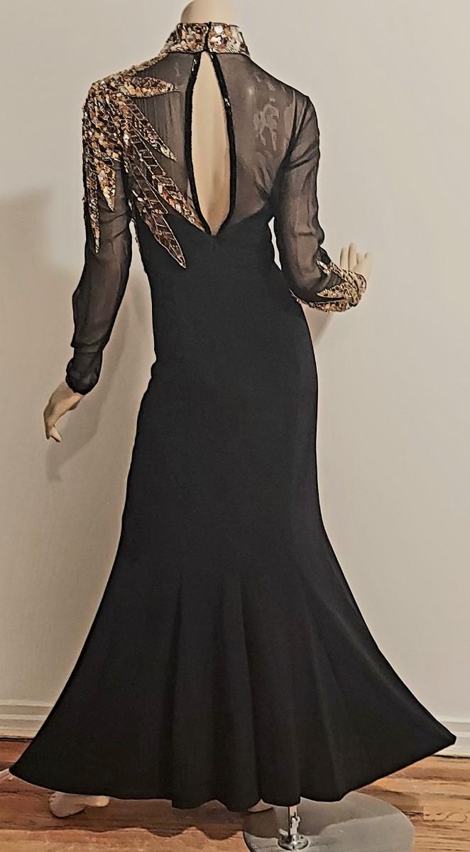 Vtg 1980s Oleg Cassini Crepe Maxi Gown with Gold Sequins Embellished Illusion Bodice. Oval back opening and back Zipper. This Stunning Festive Glamorous Gown is Drop Dead Gorgeous and in Amazing Vtg Condition almost like new.