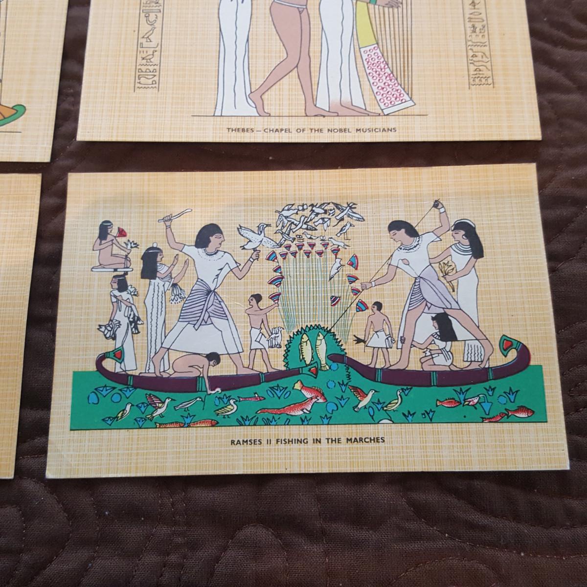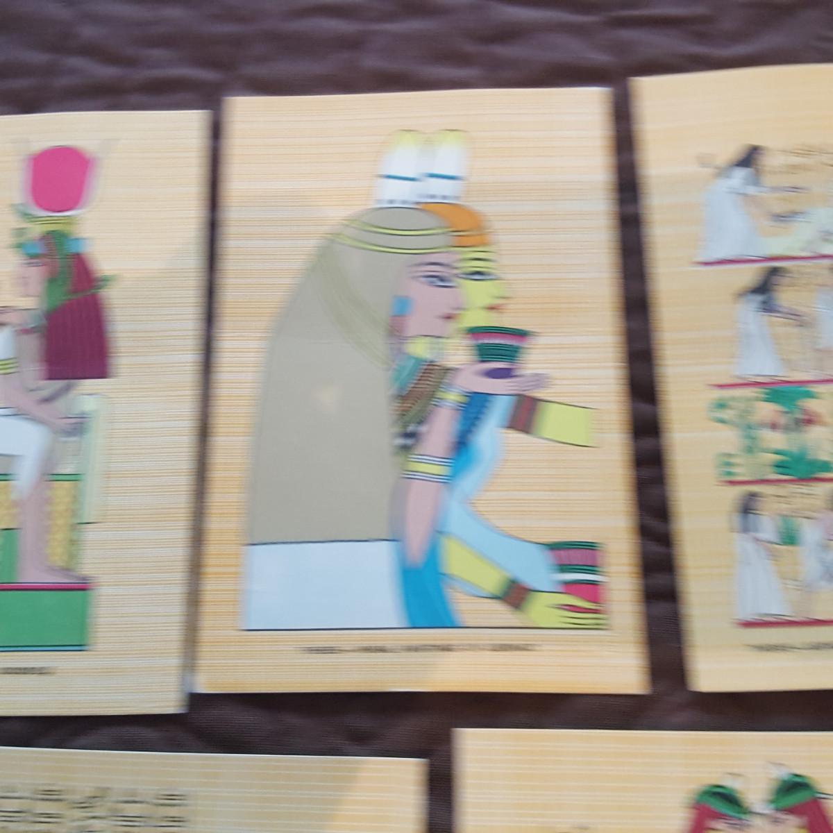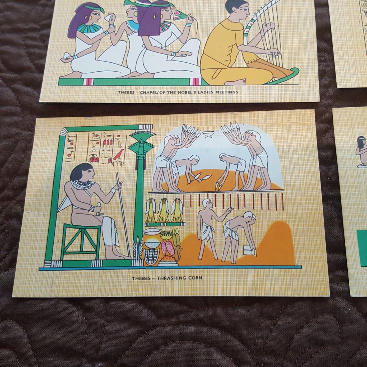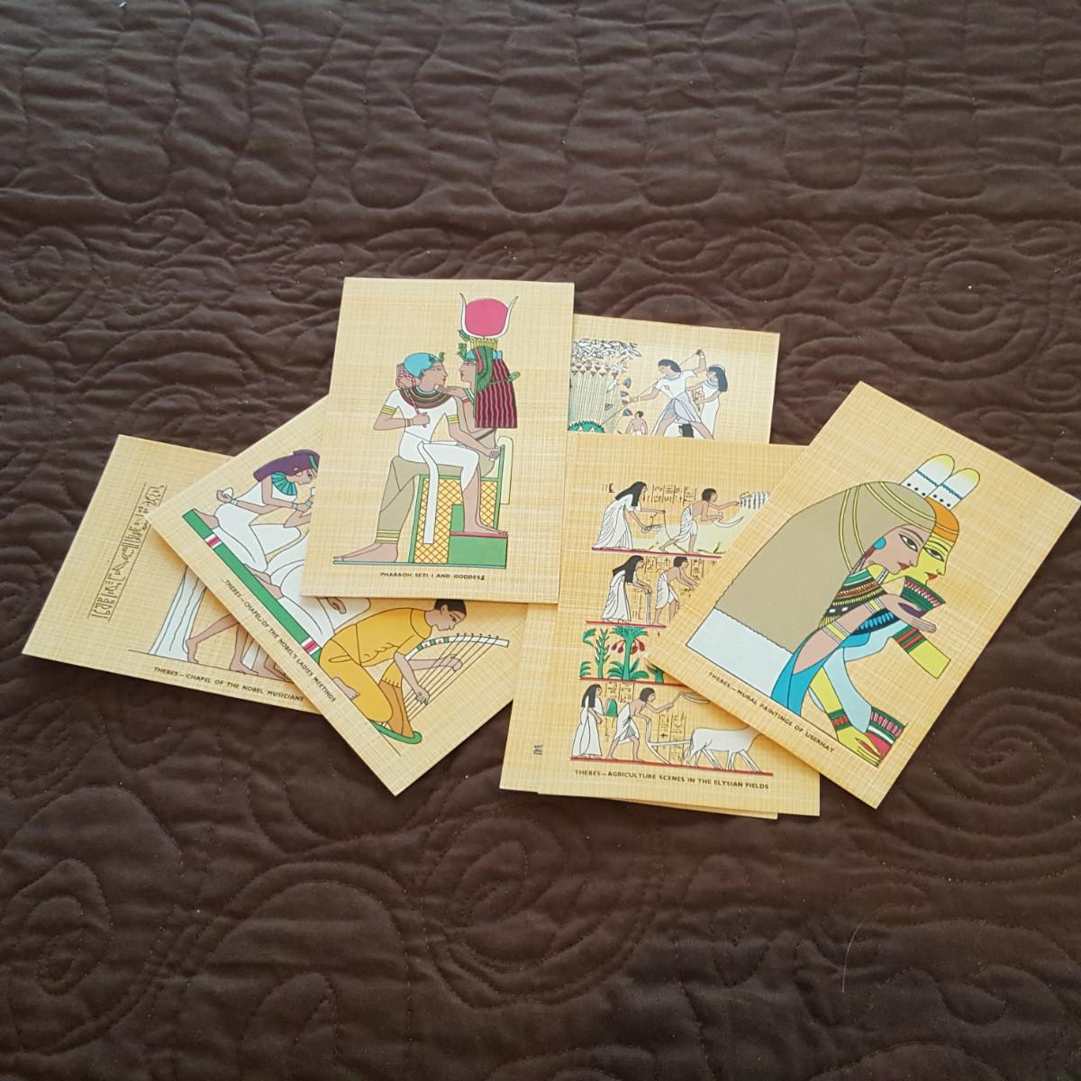 This auction lot is for a series of Egyptian Themed Postcards. These linen-feel cards sport 8 different designs, with one additional duplicate. Great to have, hold or use for any creative purpose. Vintage postcards made in Cairo - most probably a tourist purchase.