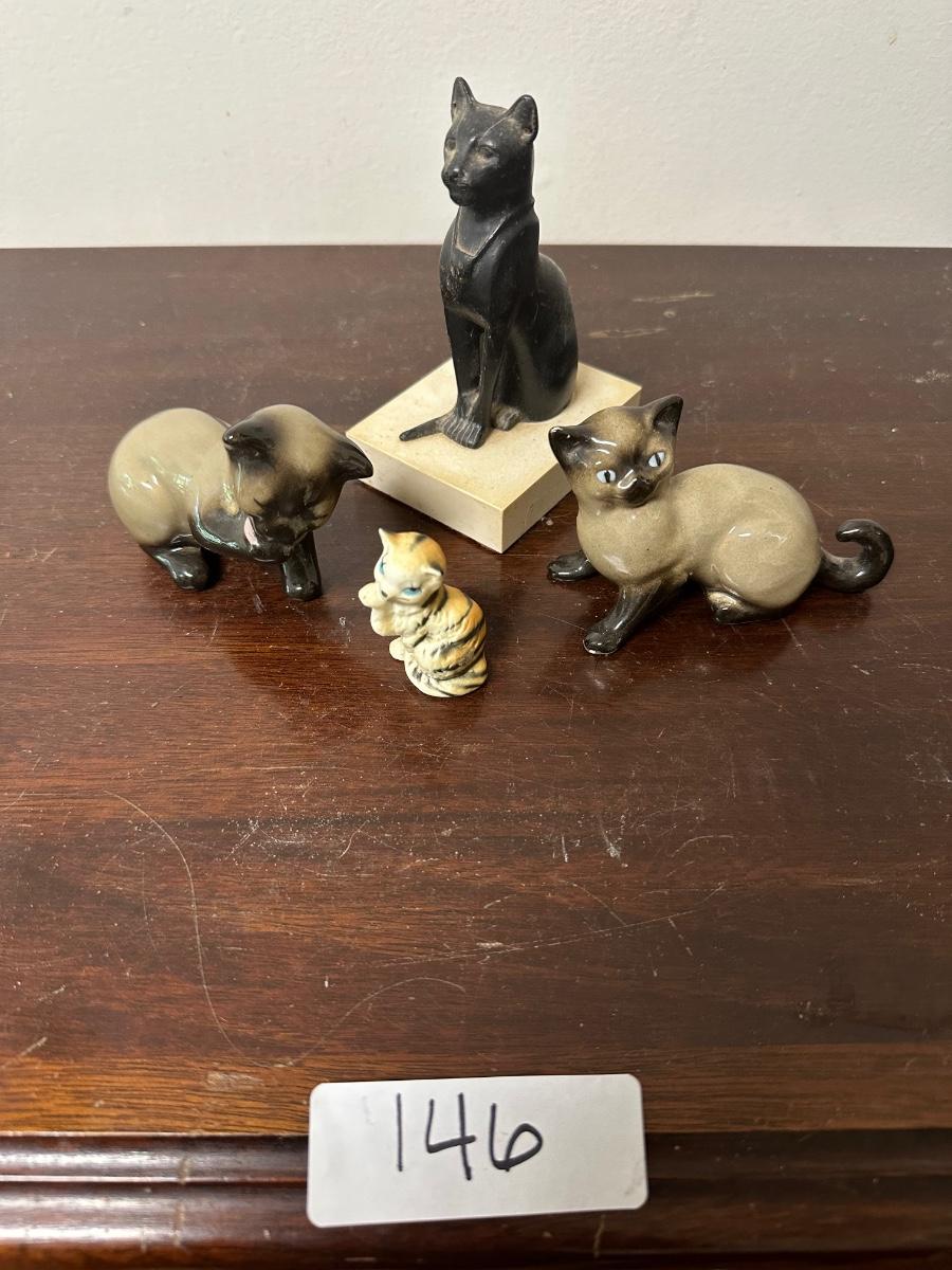 EGYPTIAN CAT CARVED AND MISC CAT FIGURES AS PICTURED