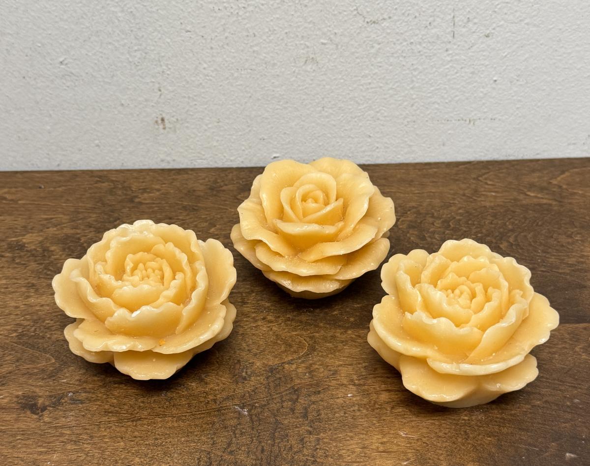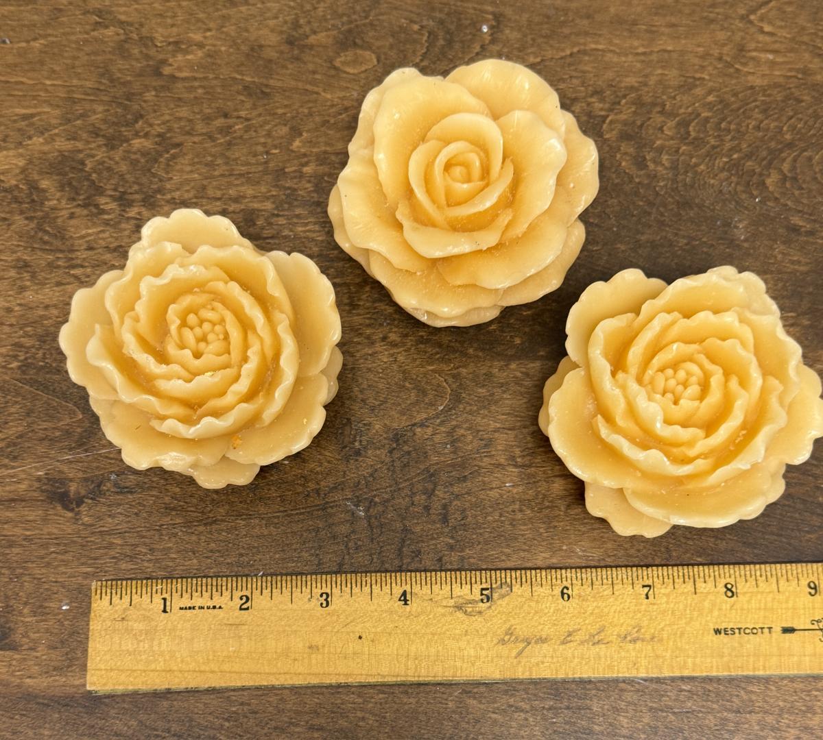 Each is approx. 3" across. Battery is in the base. Tested, works as expected.