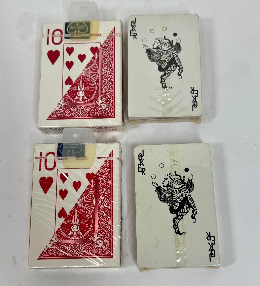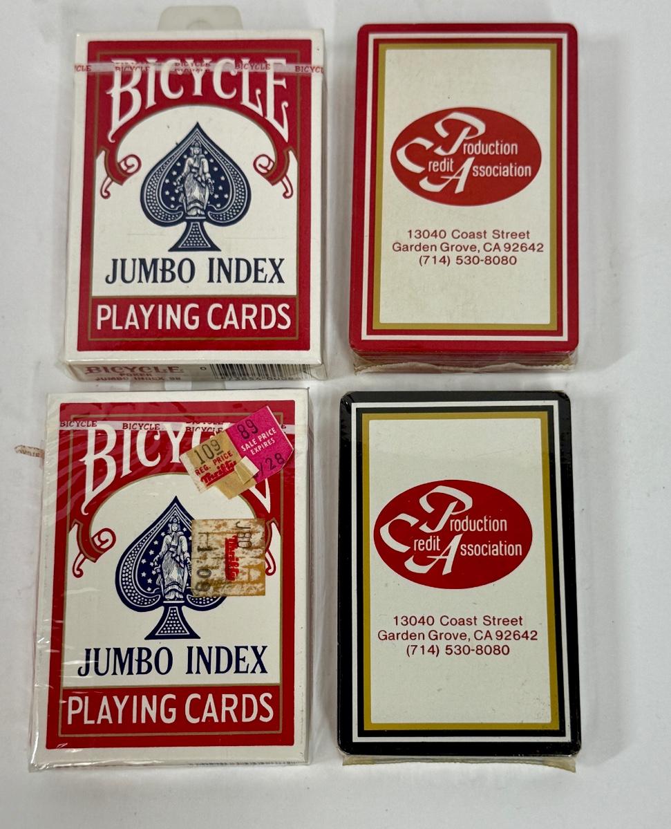 2 packs of Bicycle Jumbo Index Playing Cards and 2 packs of Production Credit Association cards.