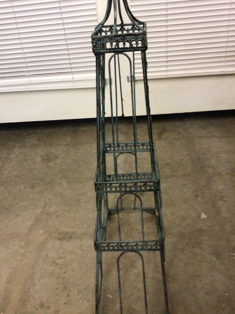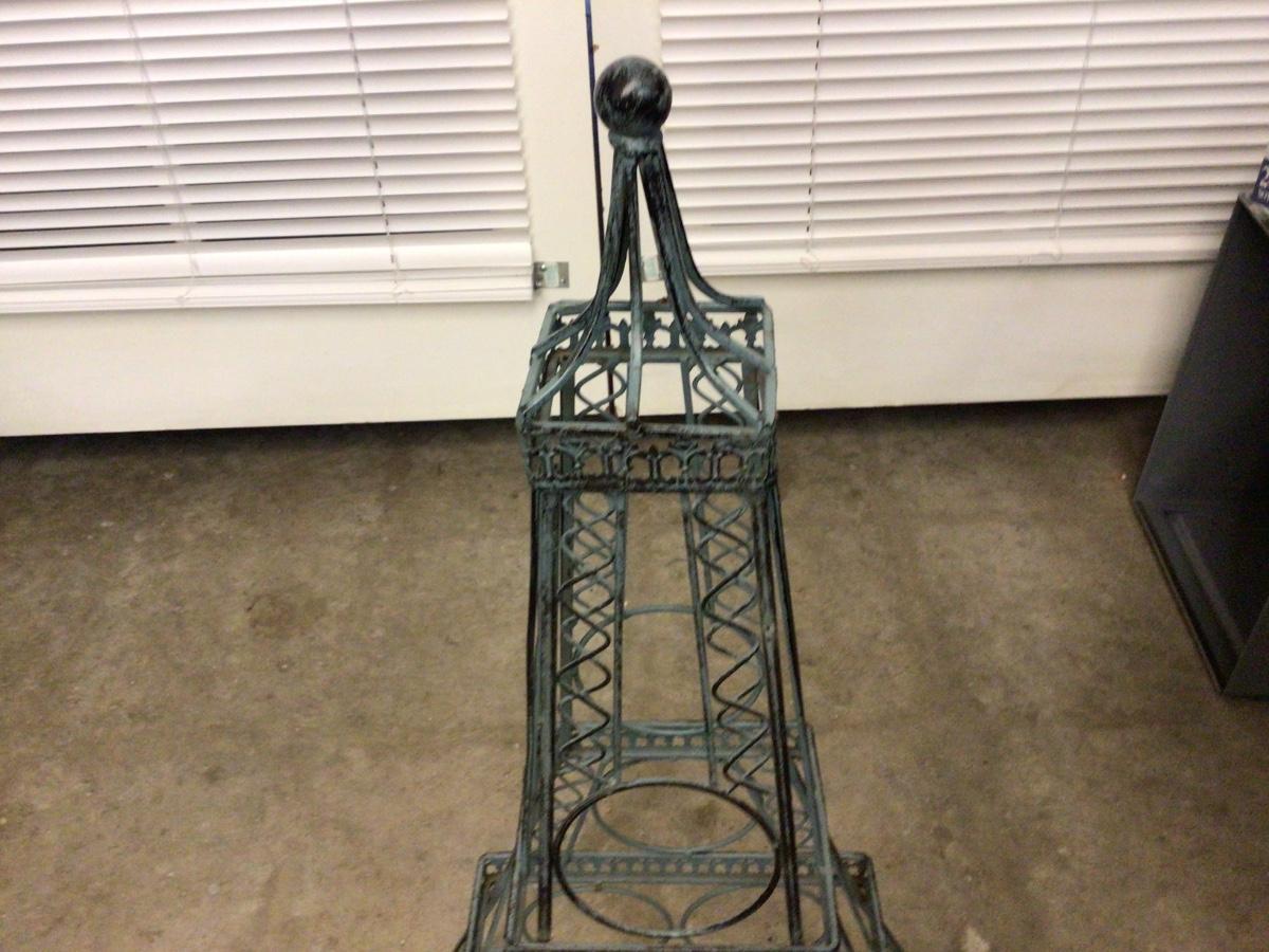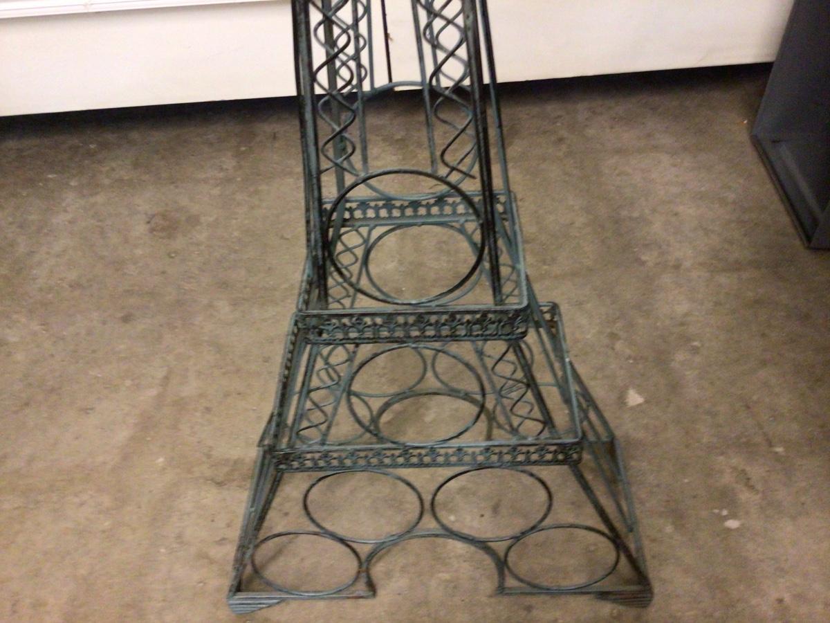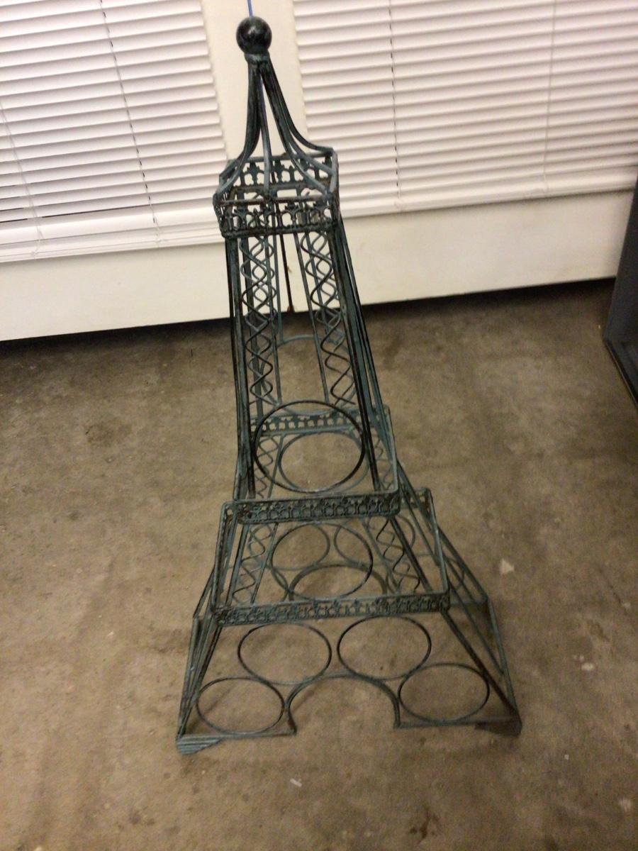 This is a great mental Eiffel Tower wine bootle holder. It is like 4 ft high would look great in a den or living room.