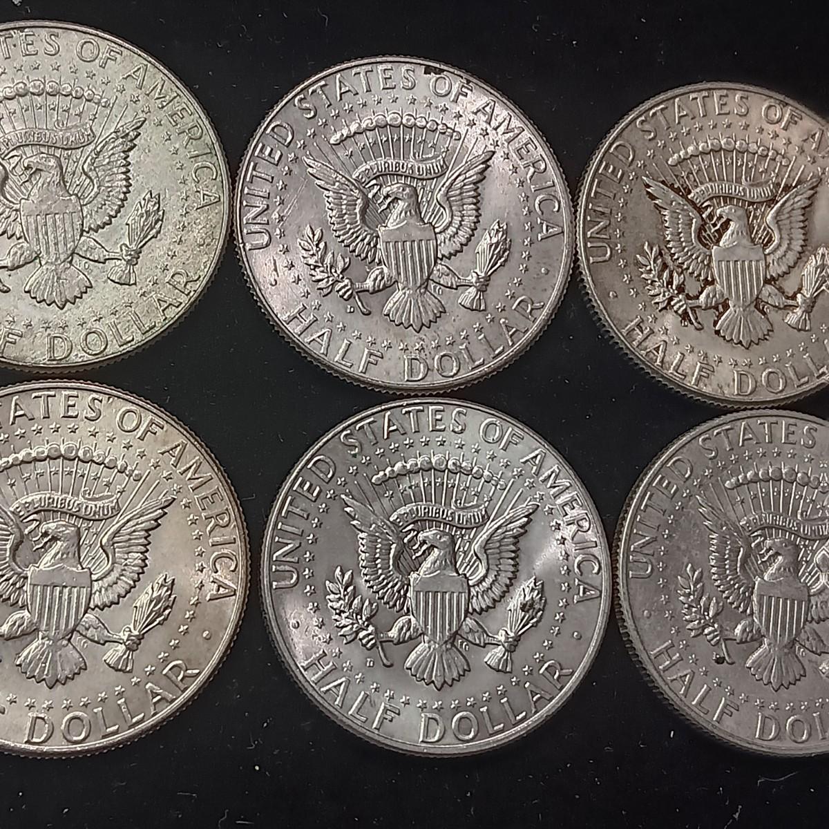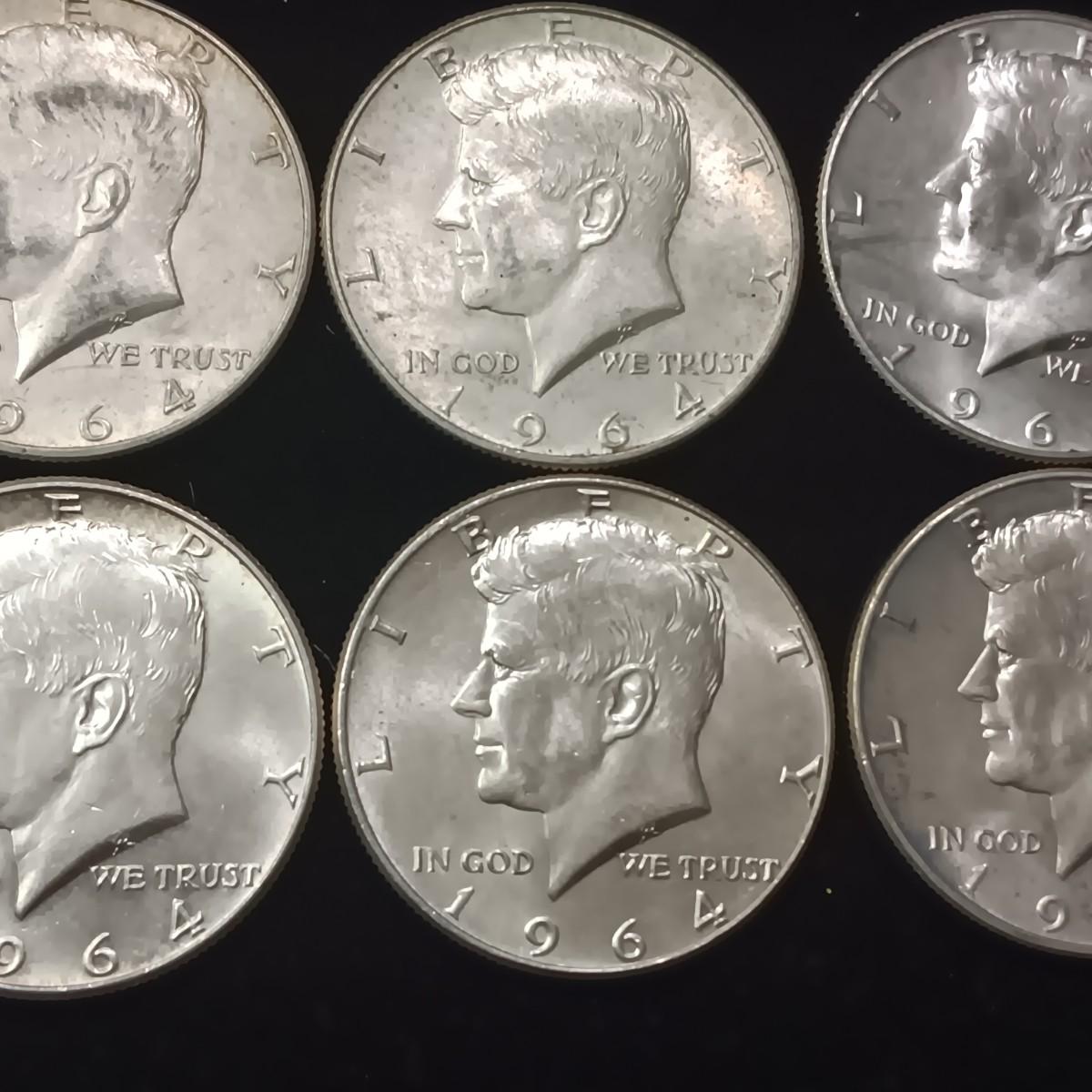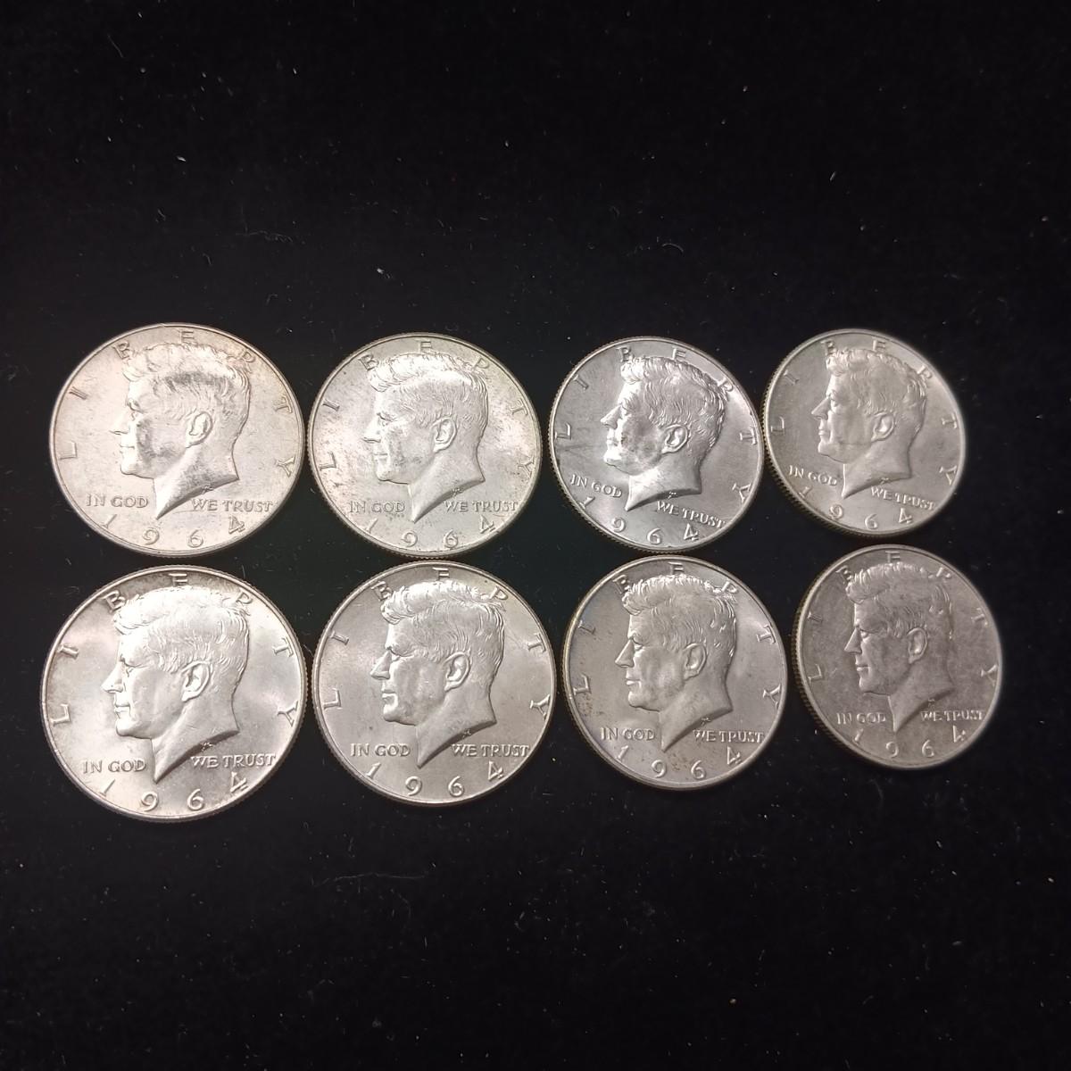 EIGHT 1964 KENNEDY SILVER HALF DOLLARS