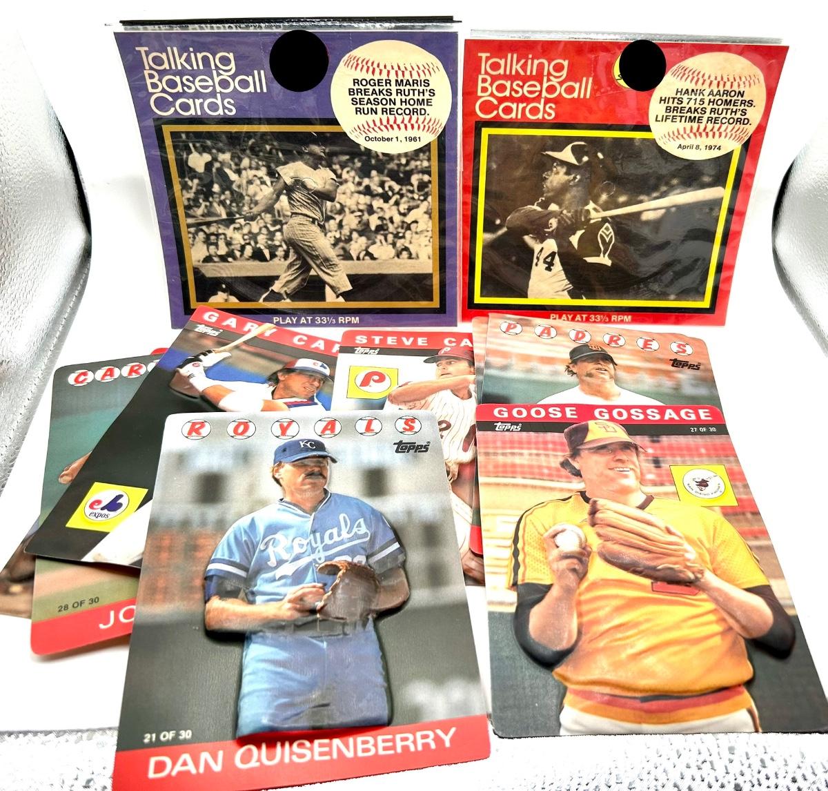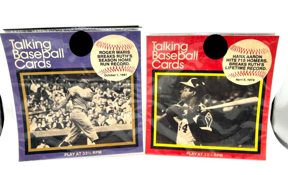 Lot includes 2 Talking Records of Hank Aaron and Roger Maris and 8 Topps Plastic 3-D 5x7 Cards. Records are still sealed in original packaging and play at 33-1/2 speed.