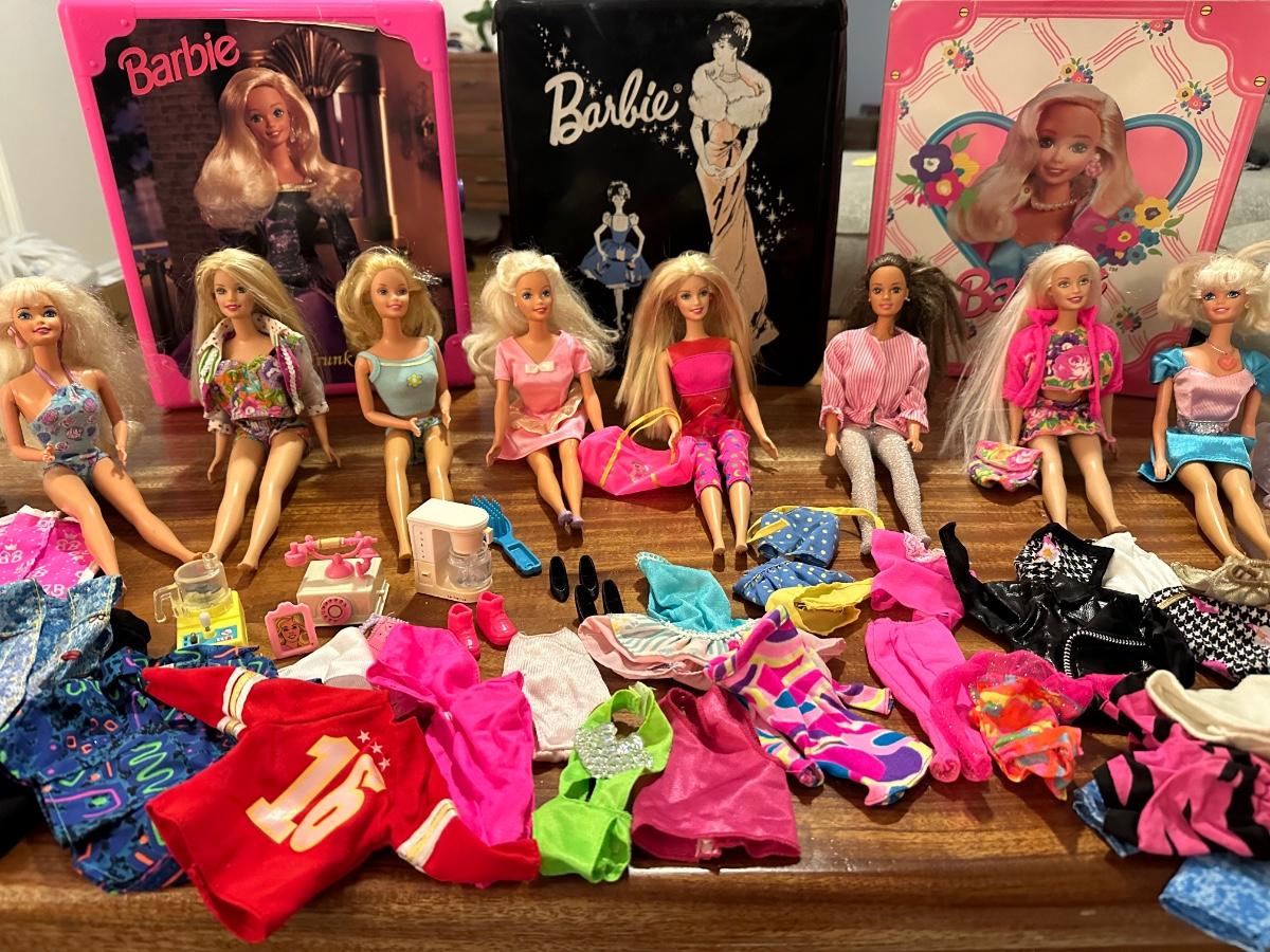 (8) Barbie Dolls, Clothes, Accessories & (3) Trunks