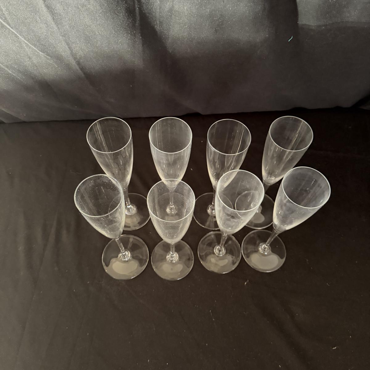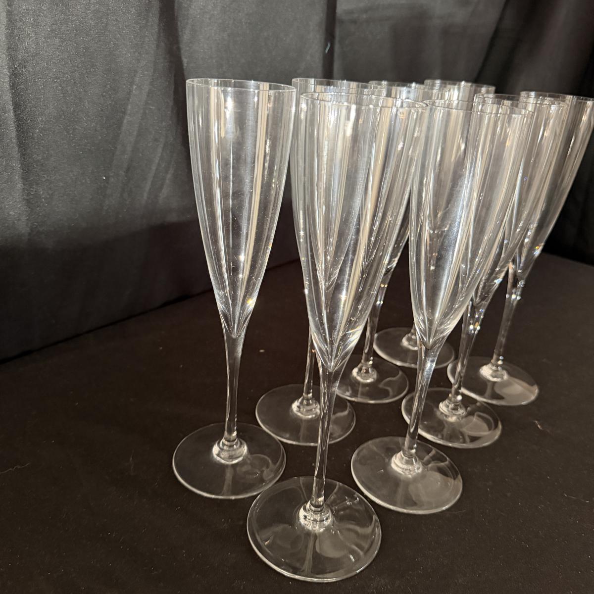 Eight Baccarat Crystal Champagne Flutes in the Dom Perignon Pattern (LR-MG)