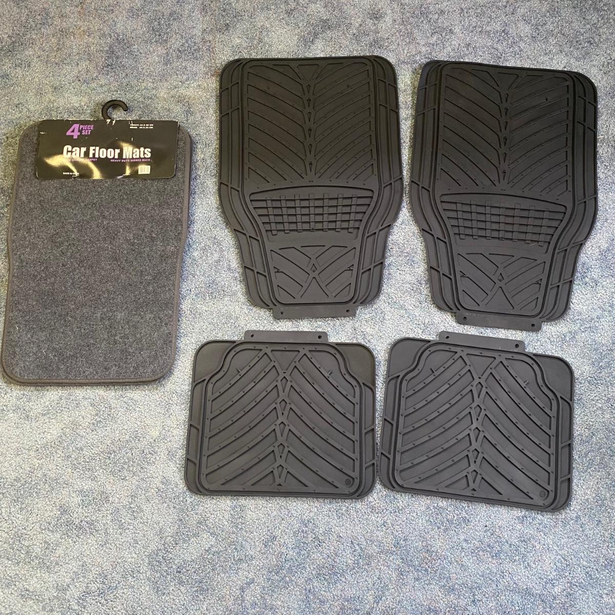 Includes four carpet car mats, the front measuring 17” x 26”, back measuring 17” x 9”. Has high quality carpet and heavy duty nibbed back.