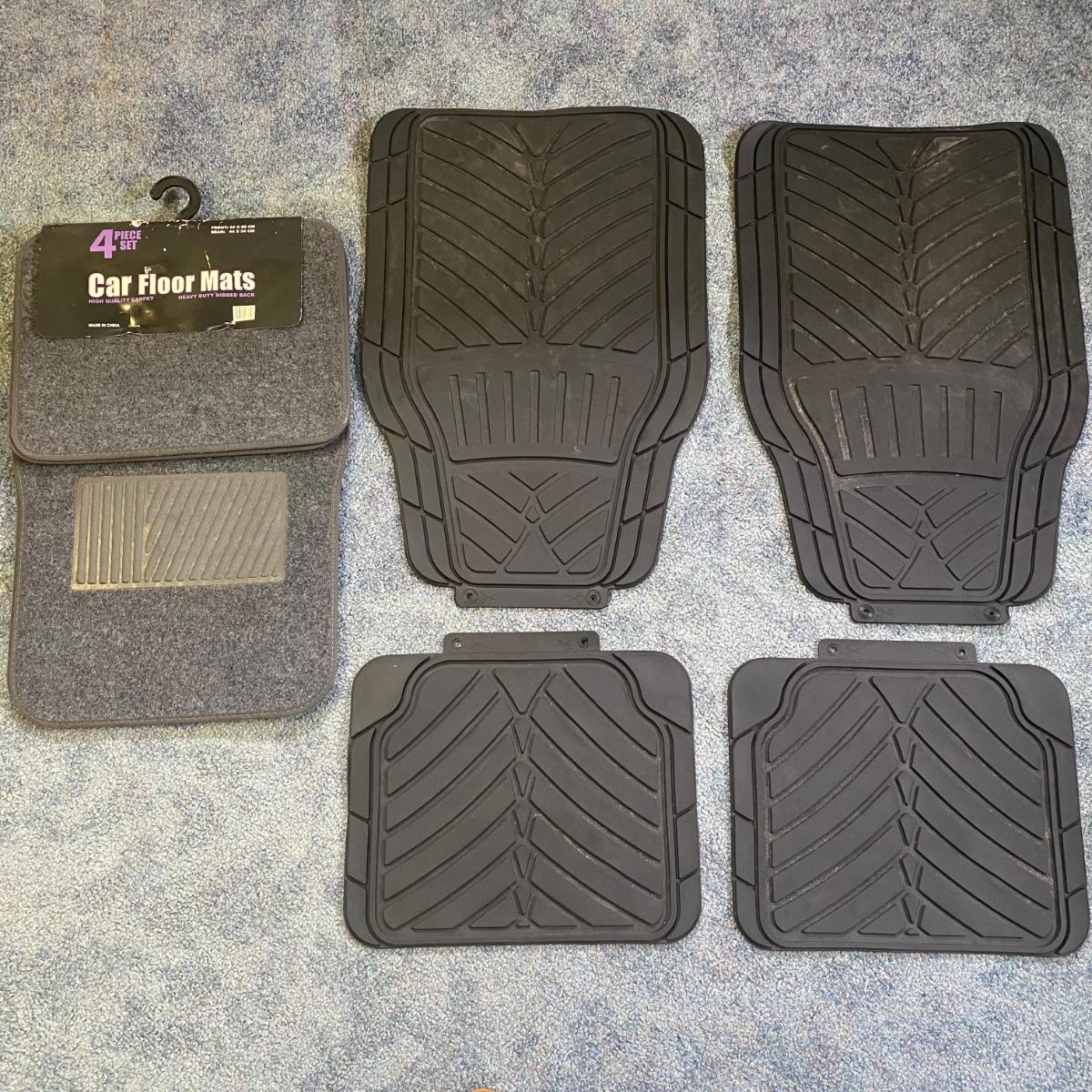 Also Includes four rubber car mats front measures 18” x 28”, back mats measure 16” x 14”. Rubber mats could use some light cleaning but everything is in pristine condition.