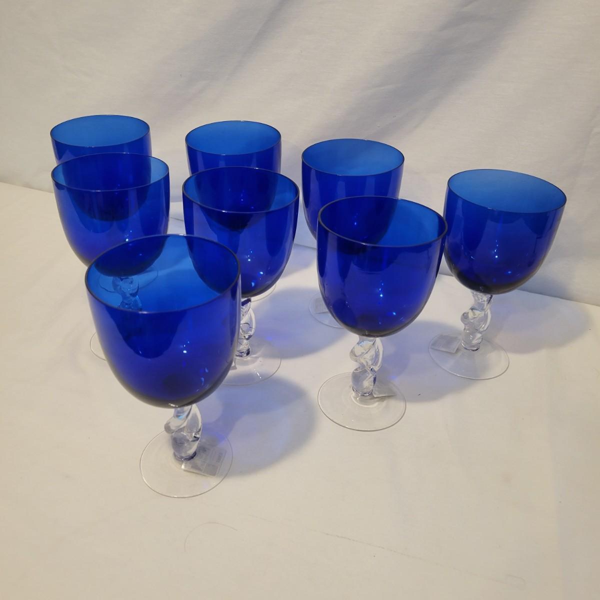 Eight Zrike Twist Cobalt Blue Goblets (LR-DW)