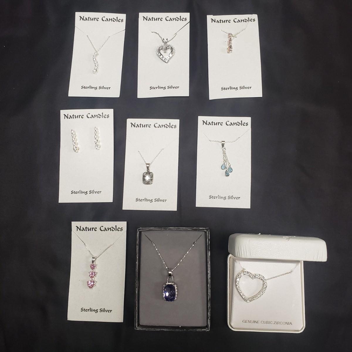 This delicate necklace group and a pair of pierced earrings would be great gifts! Jewelry is marked "925", as shown in some of the photos. The necklaces are approximately 16".