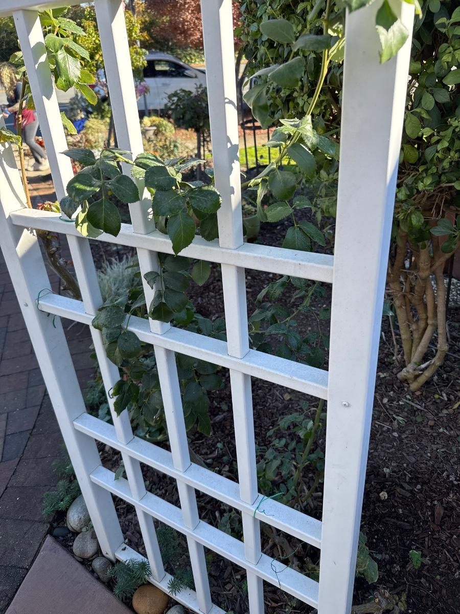 Nice pathway arch white plastic. You can break it into pieces or transport whole it’s not heavy,