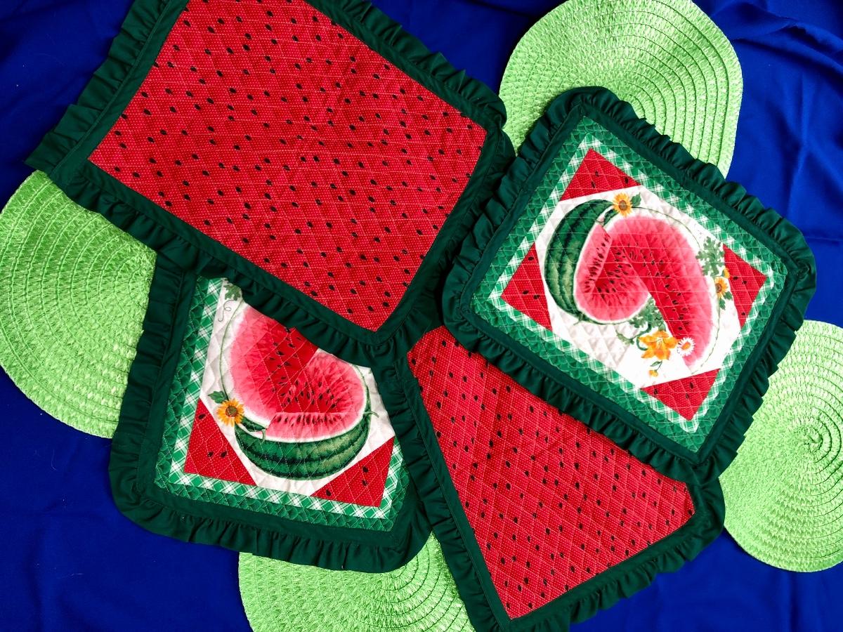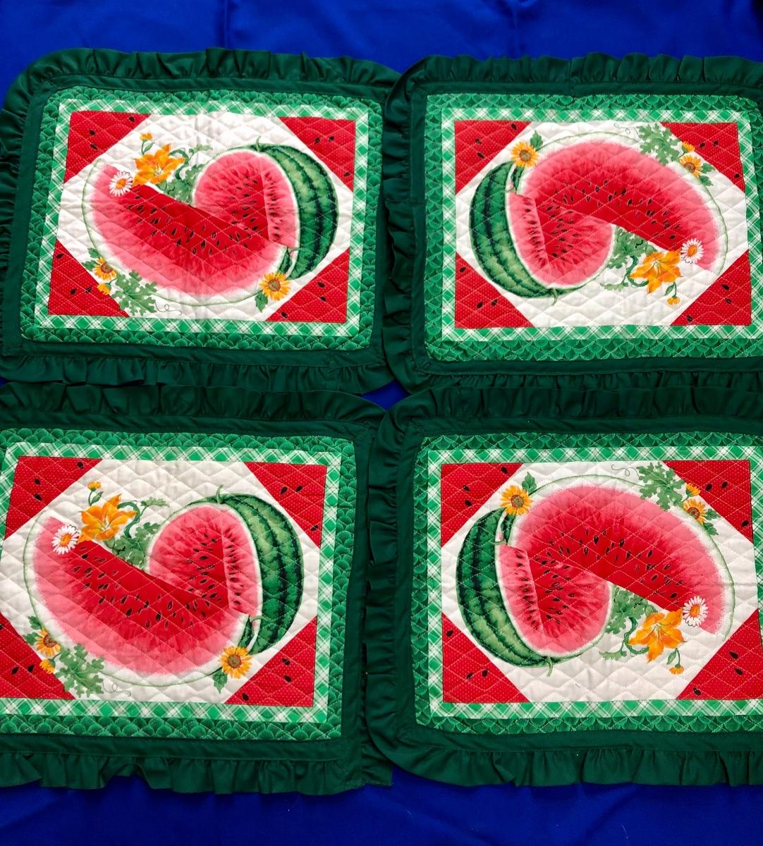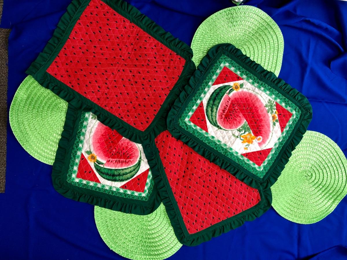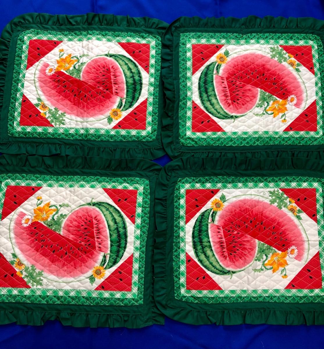 Homemade watermelon placemats with store-bought circular placemats. Both in good condition.