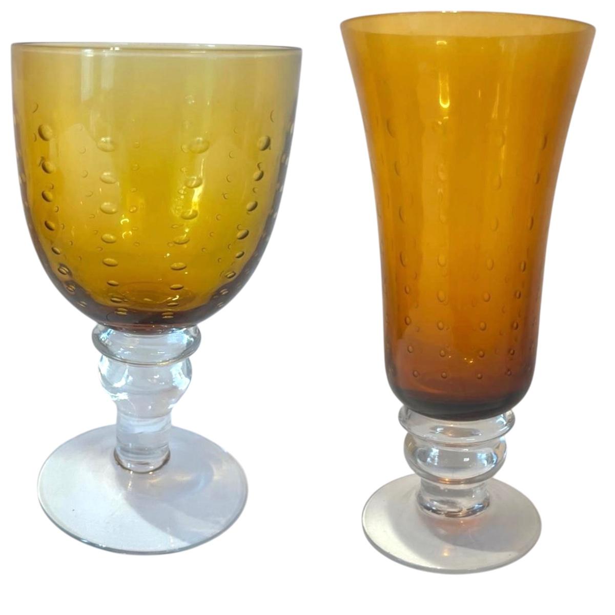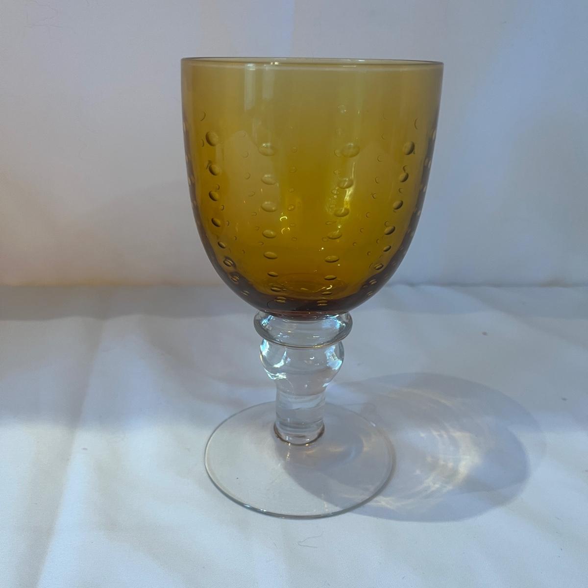 Bubbled Amber & Clear Glass Goblet Sets (LR-MG)