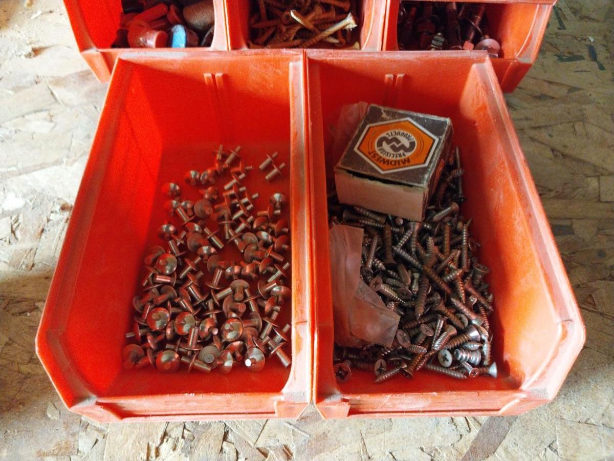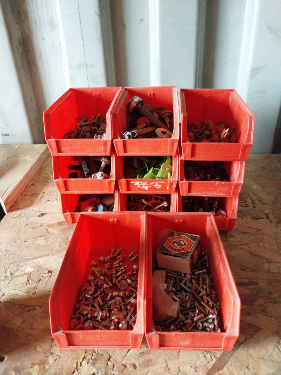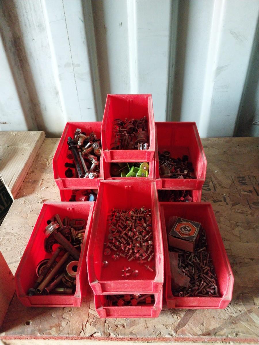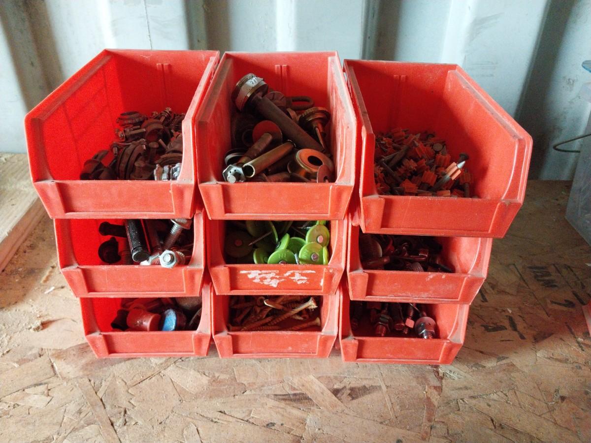 EIGHT STACKABLE BINS WITH VARIETY OF HARDWARE