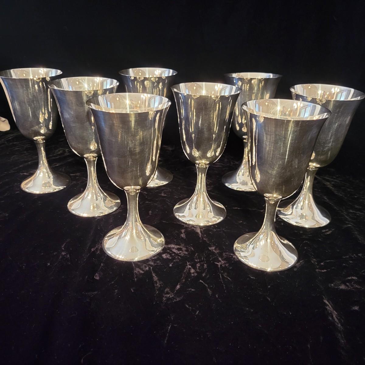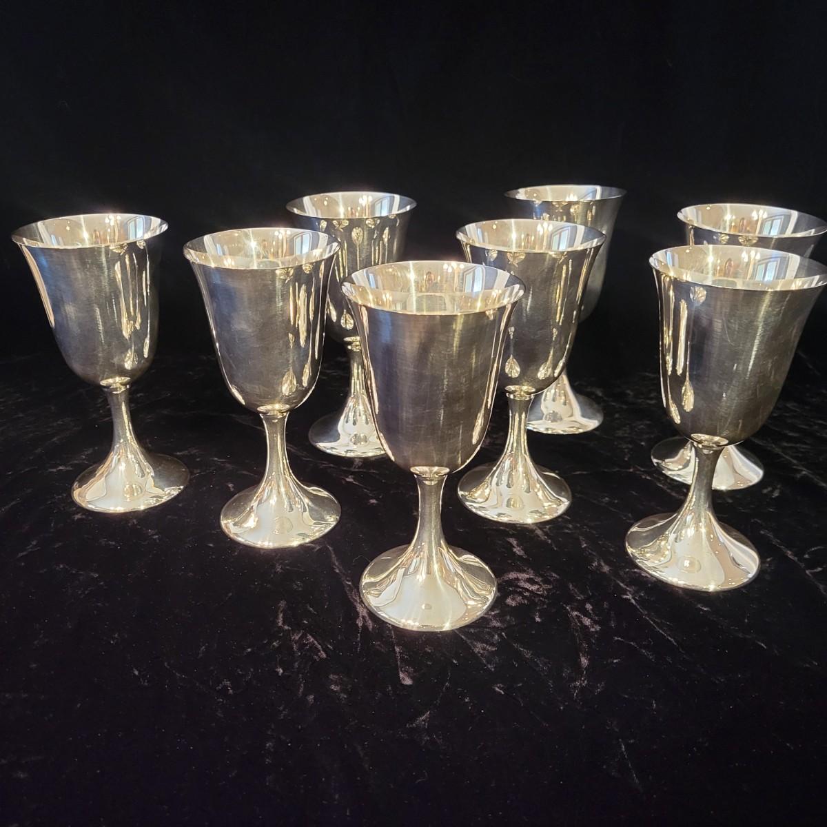 A collection of sterling silver goblets in good condition with no damage or tarnishing. Each goblet measures approximately 3.5" Diameter x 6.5". Shipping available. Shipping can be costly. We suggest calling our local UPS with dimensions and getting an estimate before bidding: (828) 252-6930