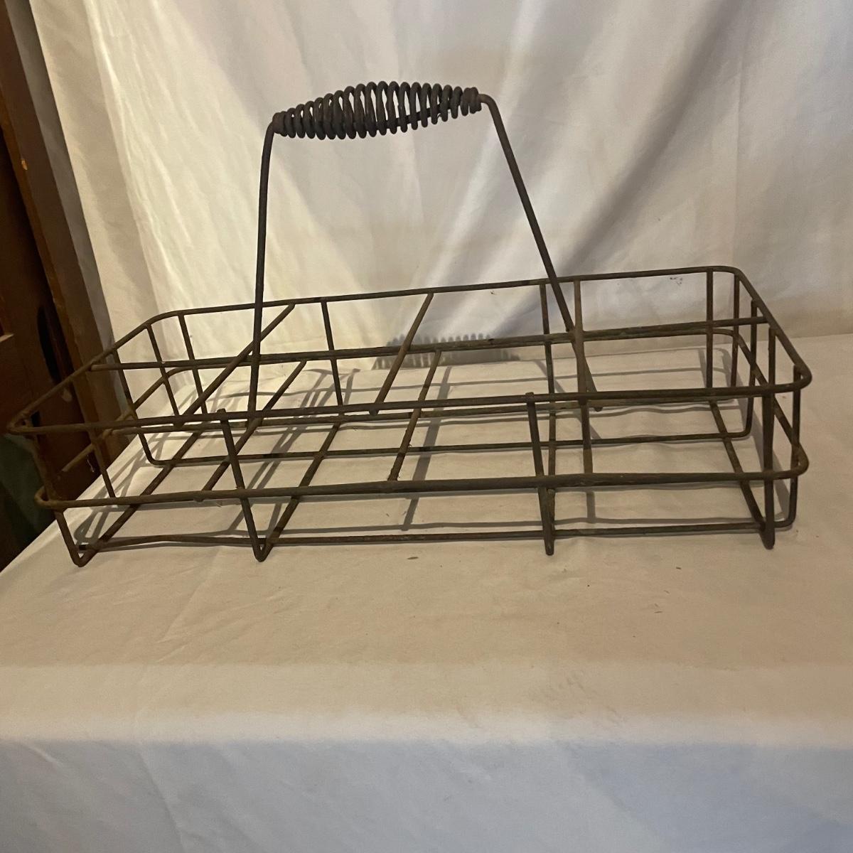 Eight Vintage Biltmore Dairy Bottles & Metal Basket (G-RG)