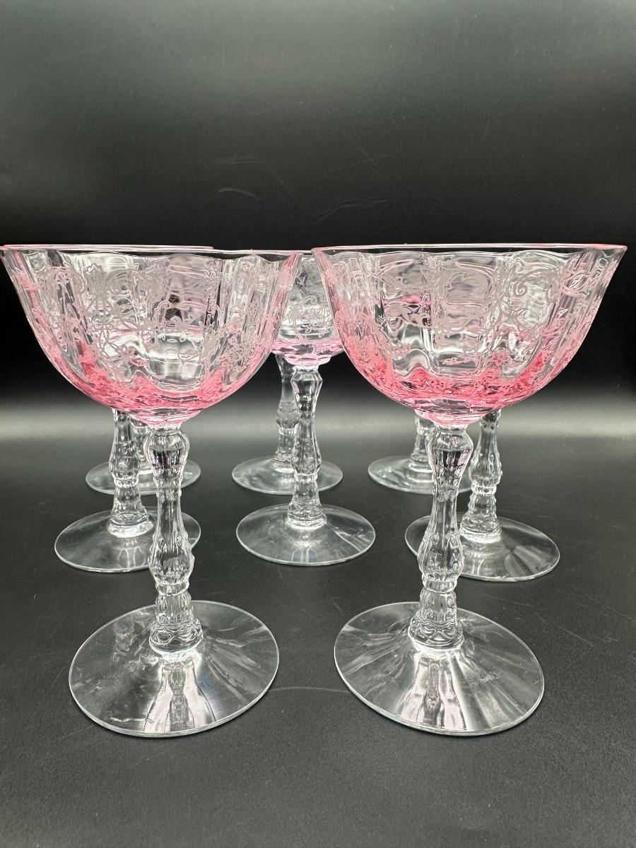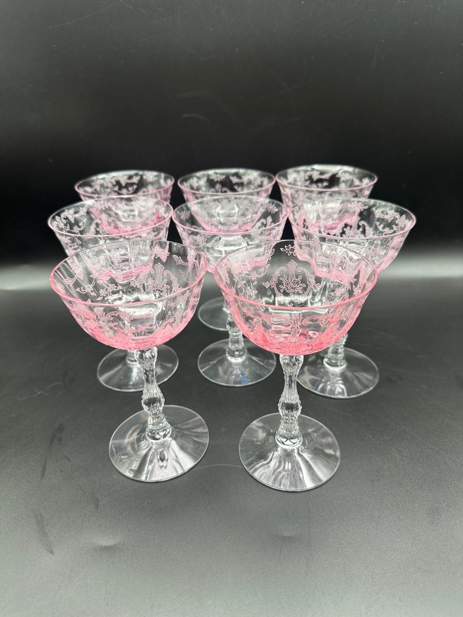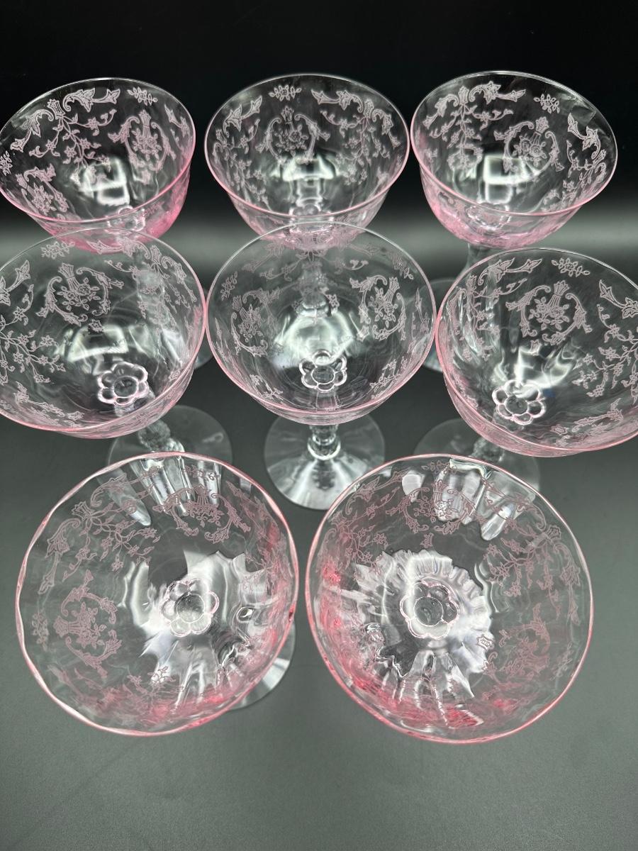 Eight Vintage Pink FOSTORIA Champagne Glasses