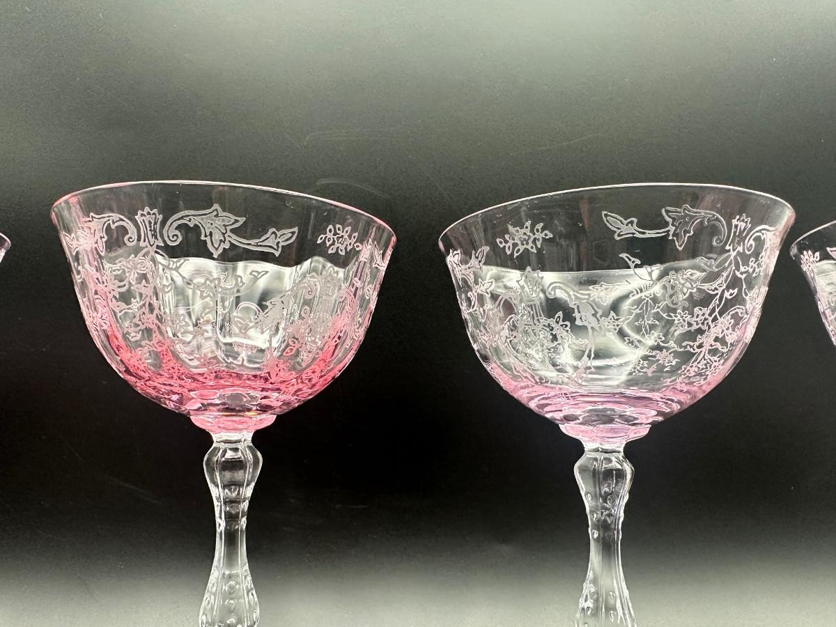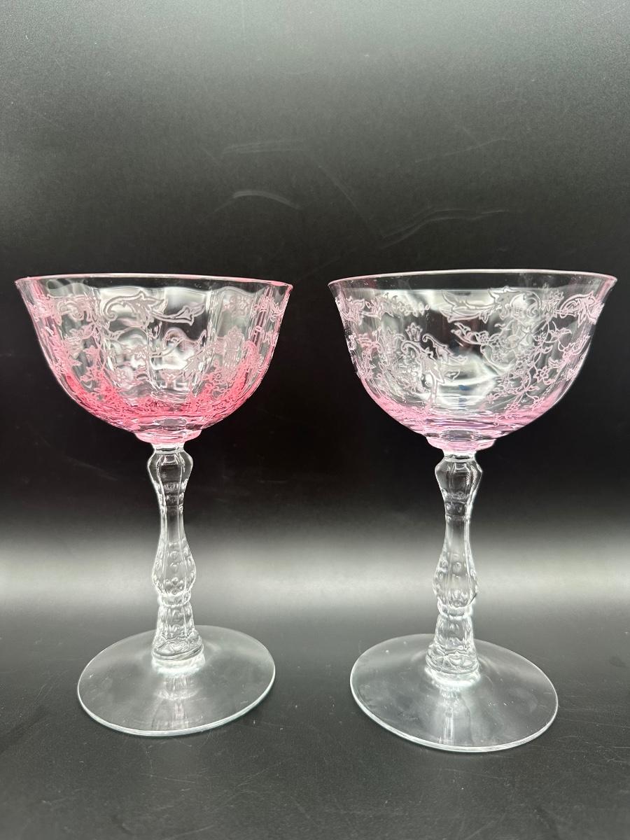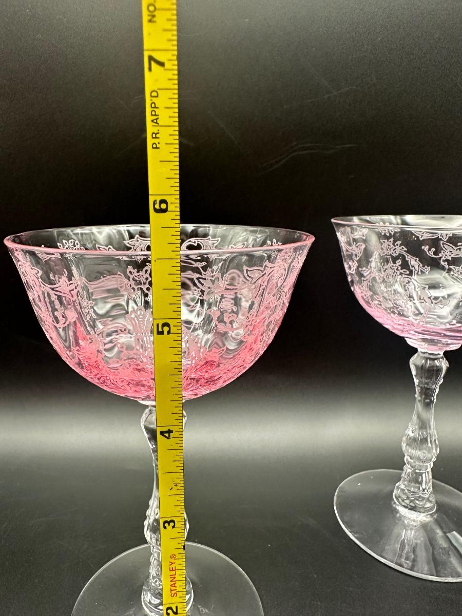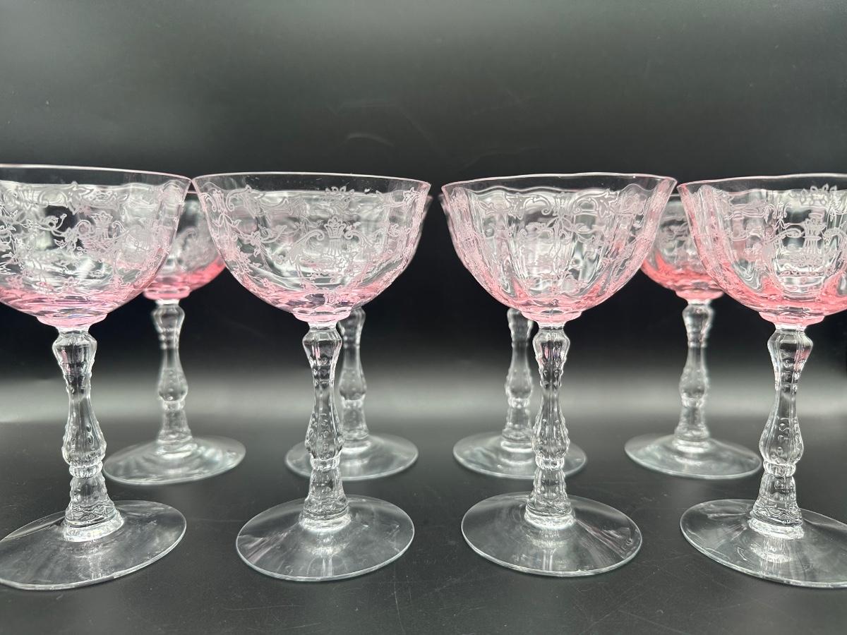 Eight Vintage Pink FOSTORIA Champagne Glasses