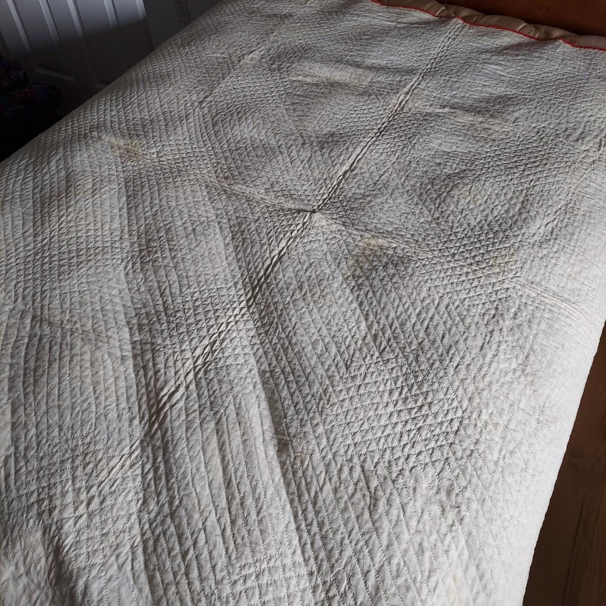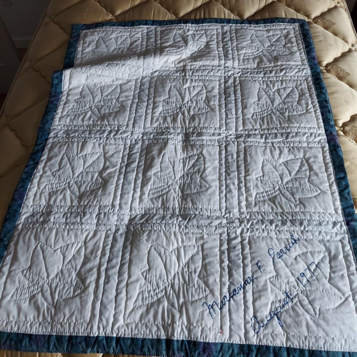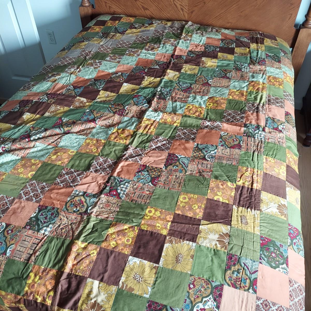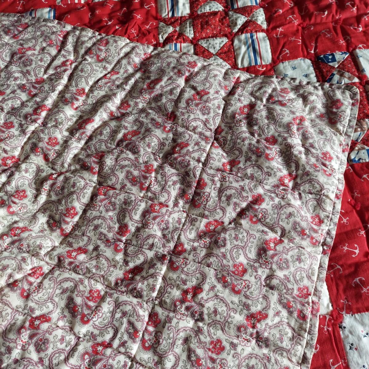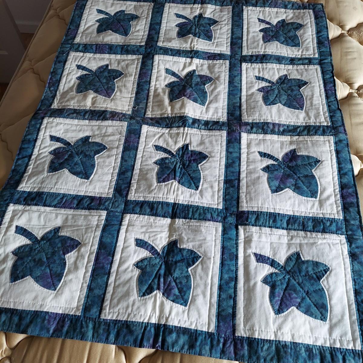 Lot includes eight vintage/antique quilts. Most appear to be hand sewn and hand quilted. Some have stains and tears due to age. The largest quilt with Chambray blue background and dresden plate style pattern measures approximately 104” x 88”H. Please see photos for details. Shipping available