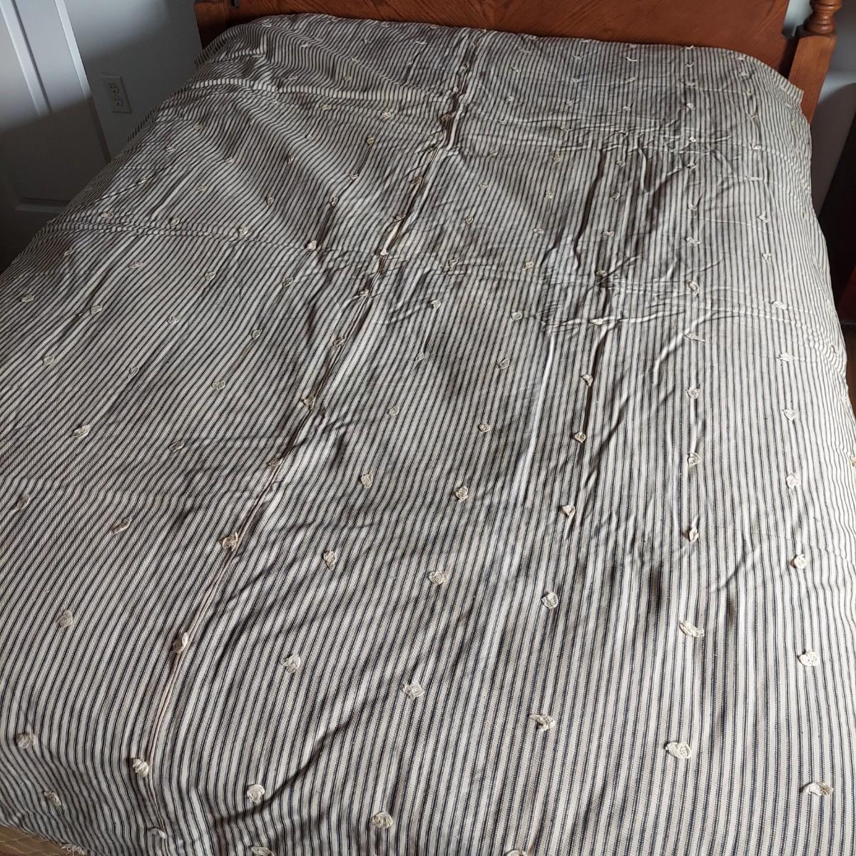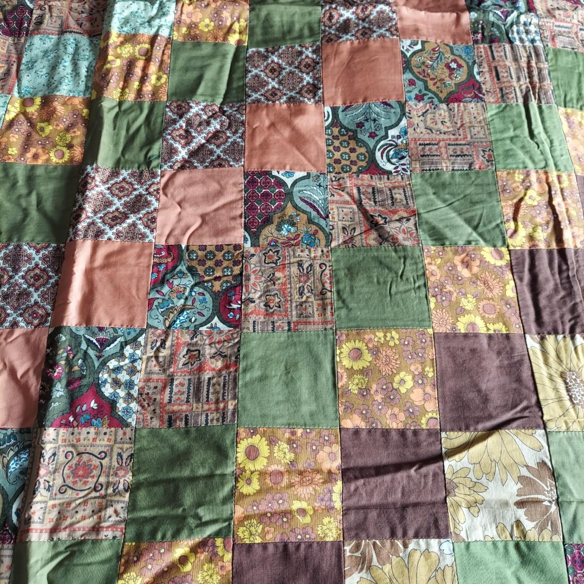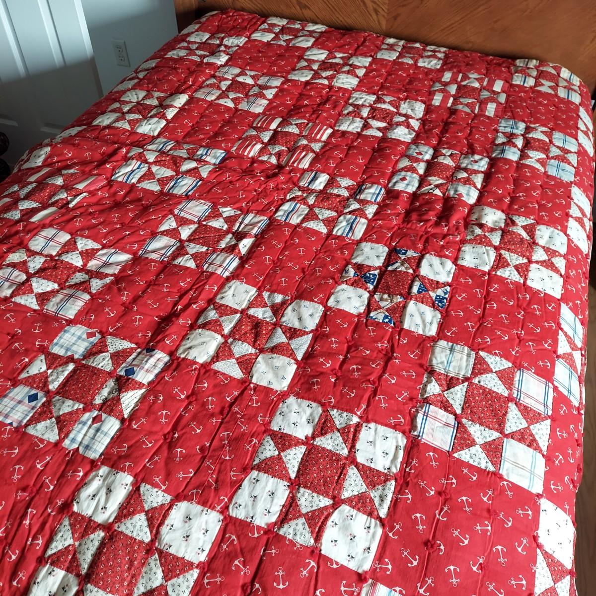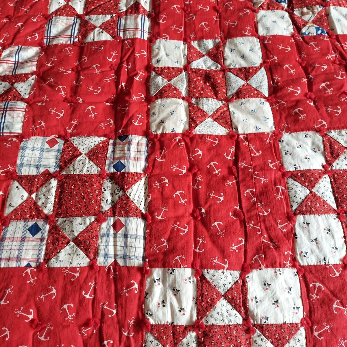 Lot includes eight vintage/antique quilts. Most appear to be hand sewn and hand quilted. Some have stains and tears due to age. The largest quilt with Chambray blue background and dresden plate style pattern measures approximately 104” x 88”H. Please see photos for details. Shipping available