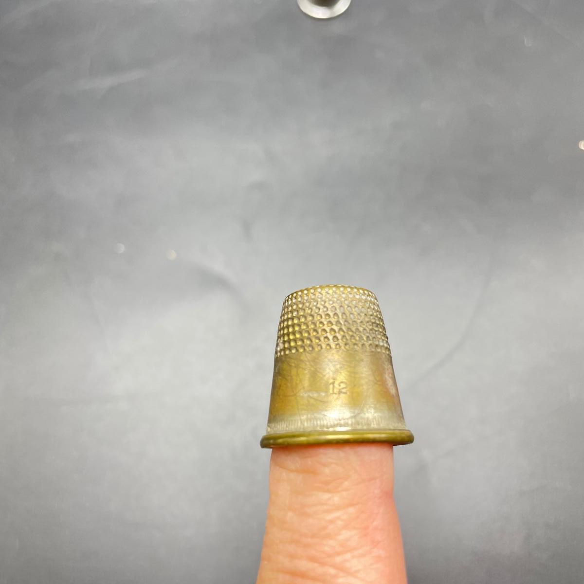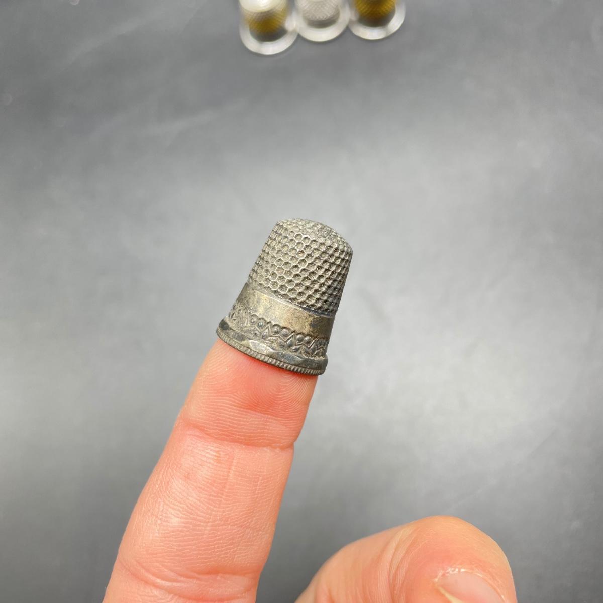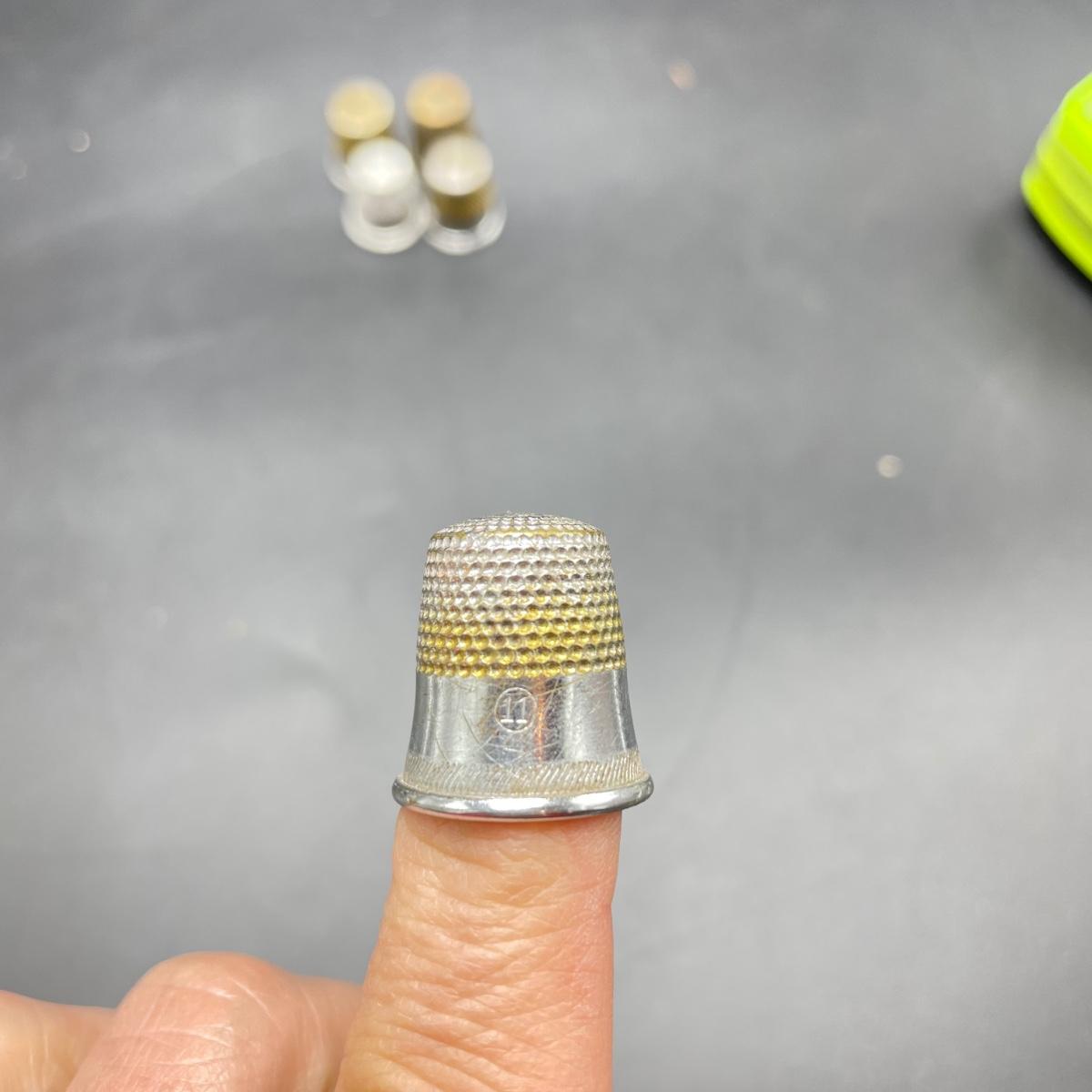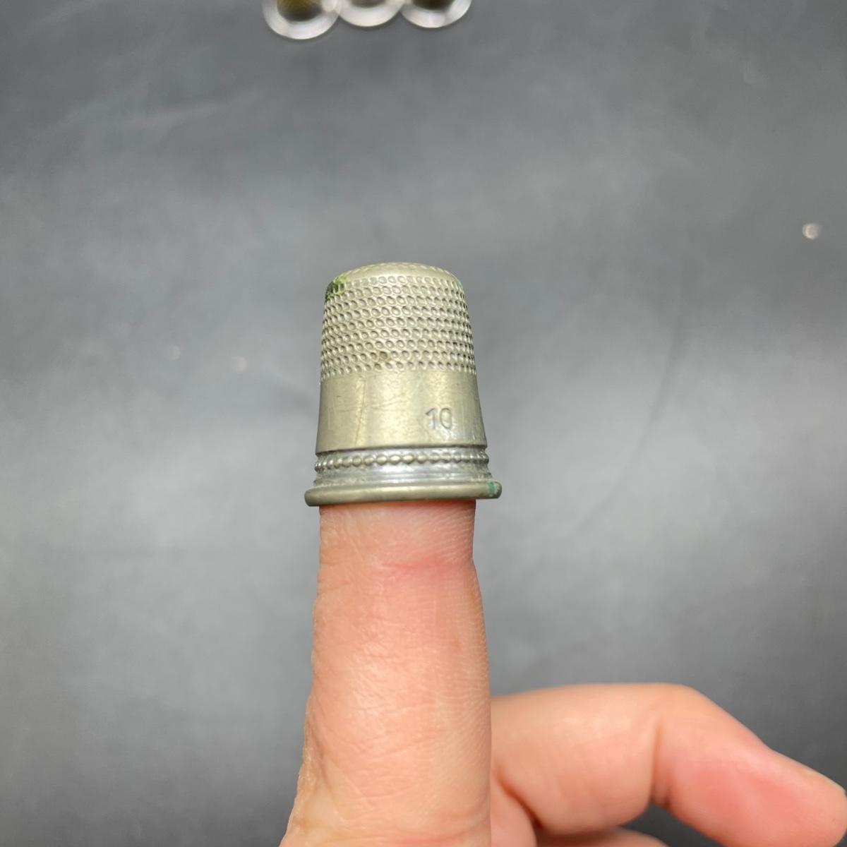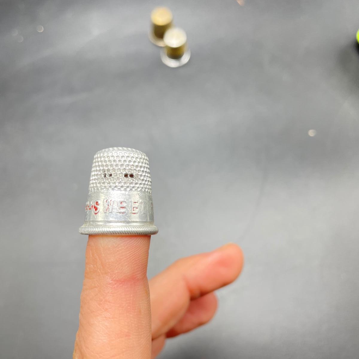 Eight vintage thimbles. Two have advertisements: Real Silk Hosiery Mills, Indianapolis, Indiana and Sweet Rose Flour. One smallest thimble is unmarked, and the last five are sized. One 10, three 11, and one 12. See images. Shipping available.