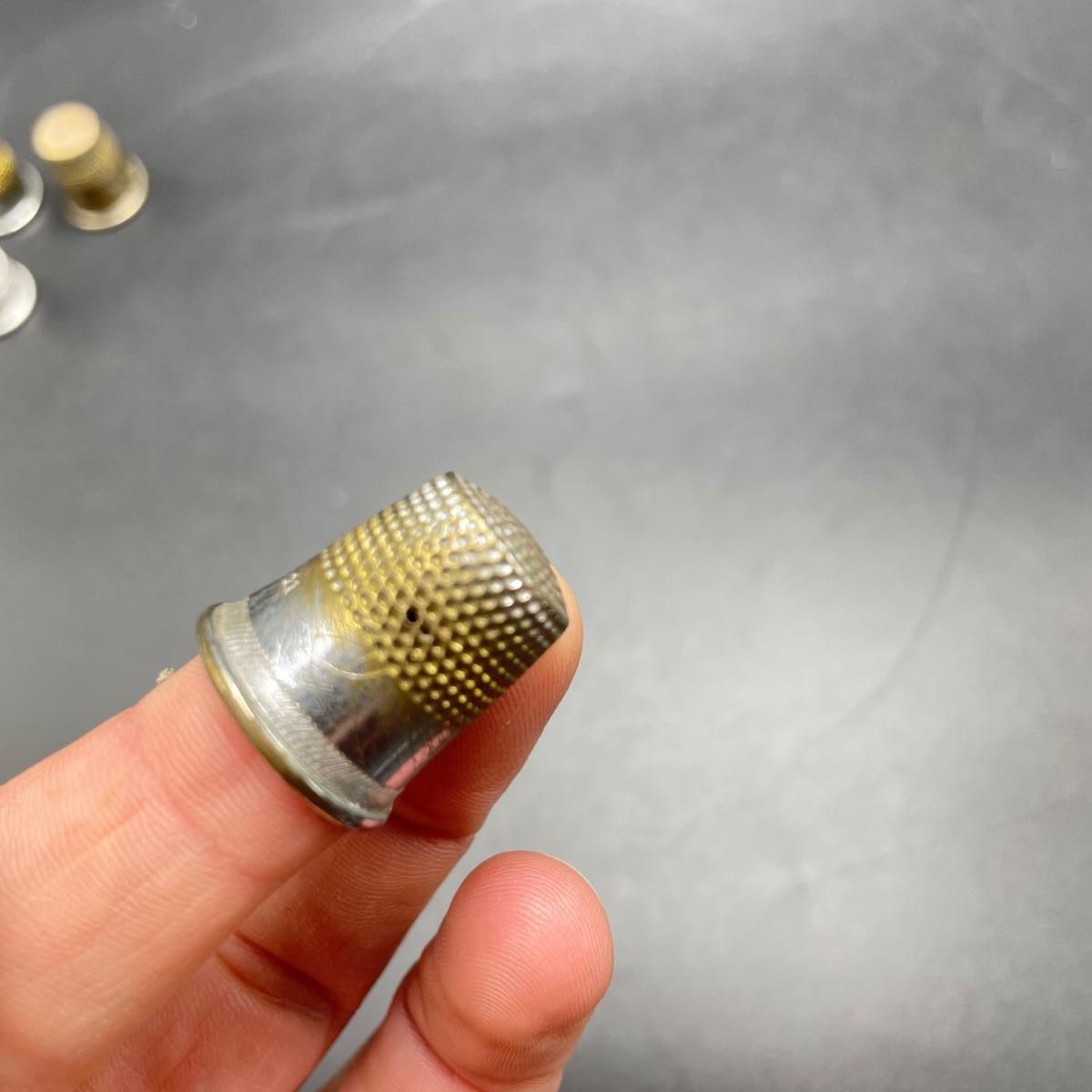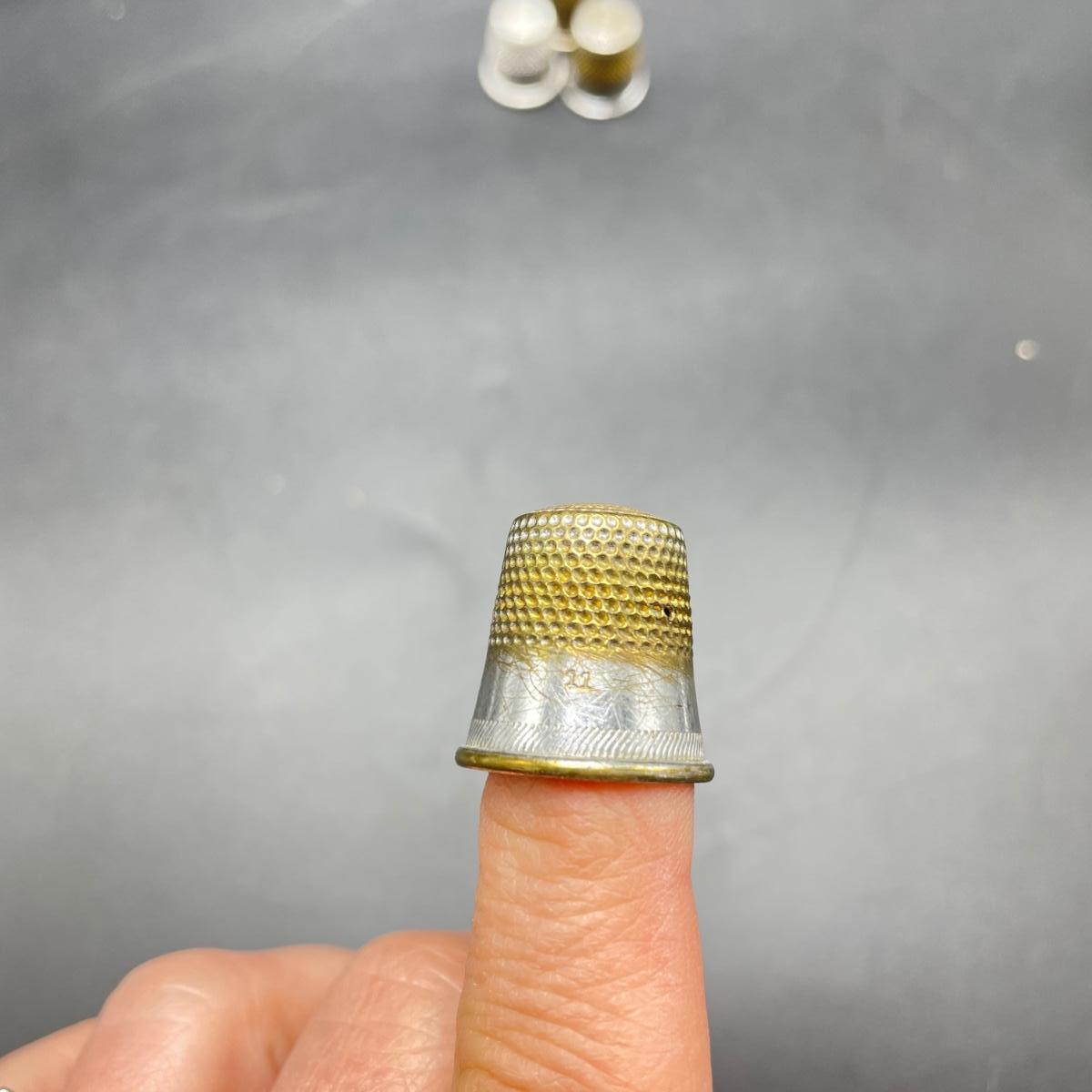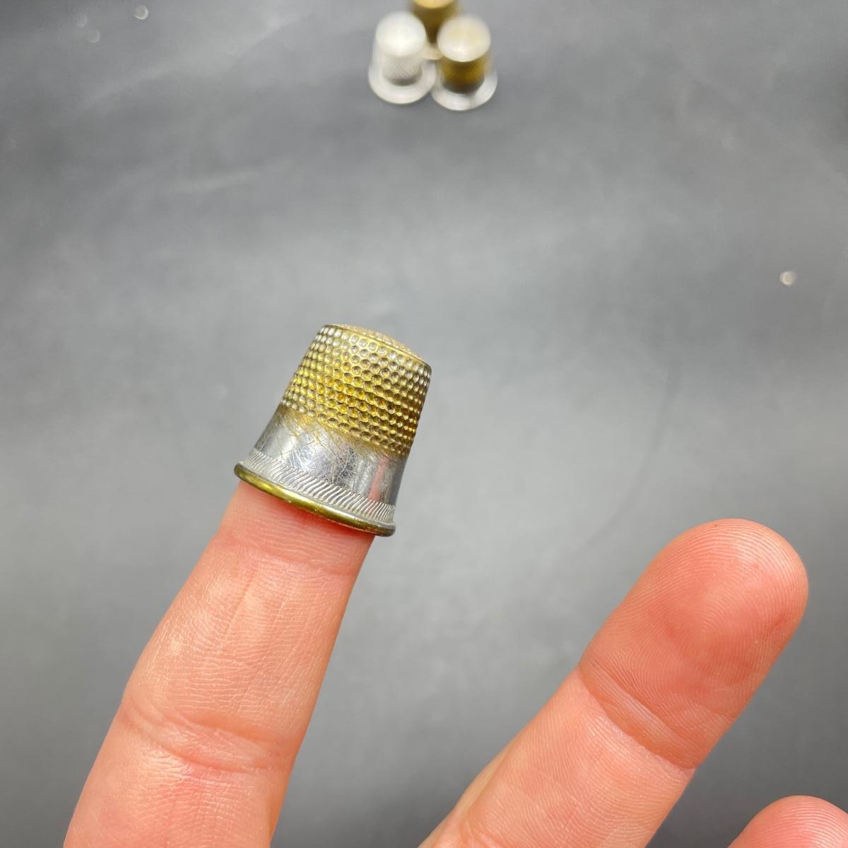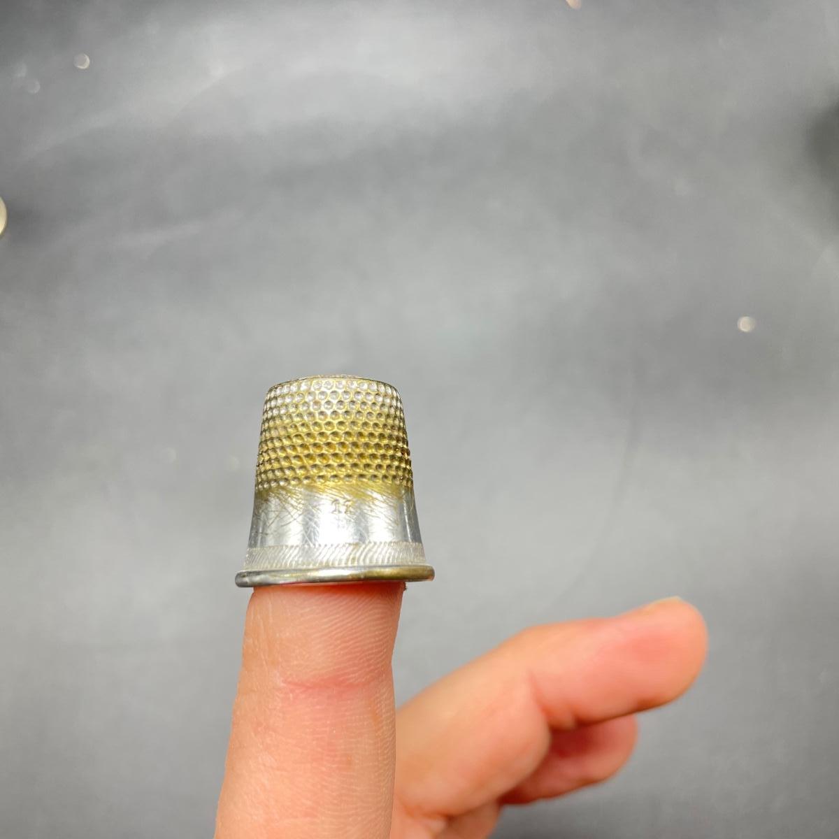 Eight vintage thimbles. Two have advertisements: Real Silk Hosiery Mills, Indianapolis, Indiana and Sweet Rose Flour. One smallest thimble is unmarked, and the last five are sized. One 10, three 11, and one 12. See images. Shipping available.