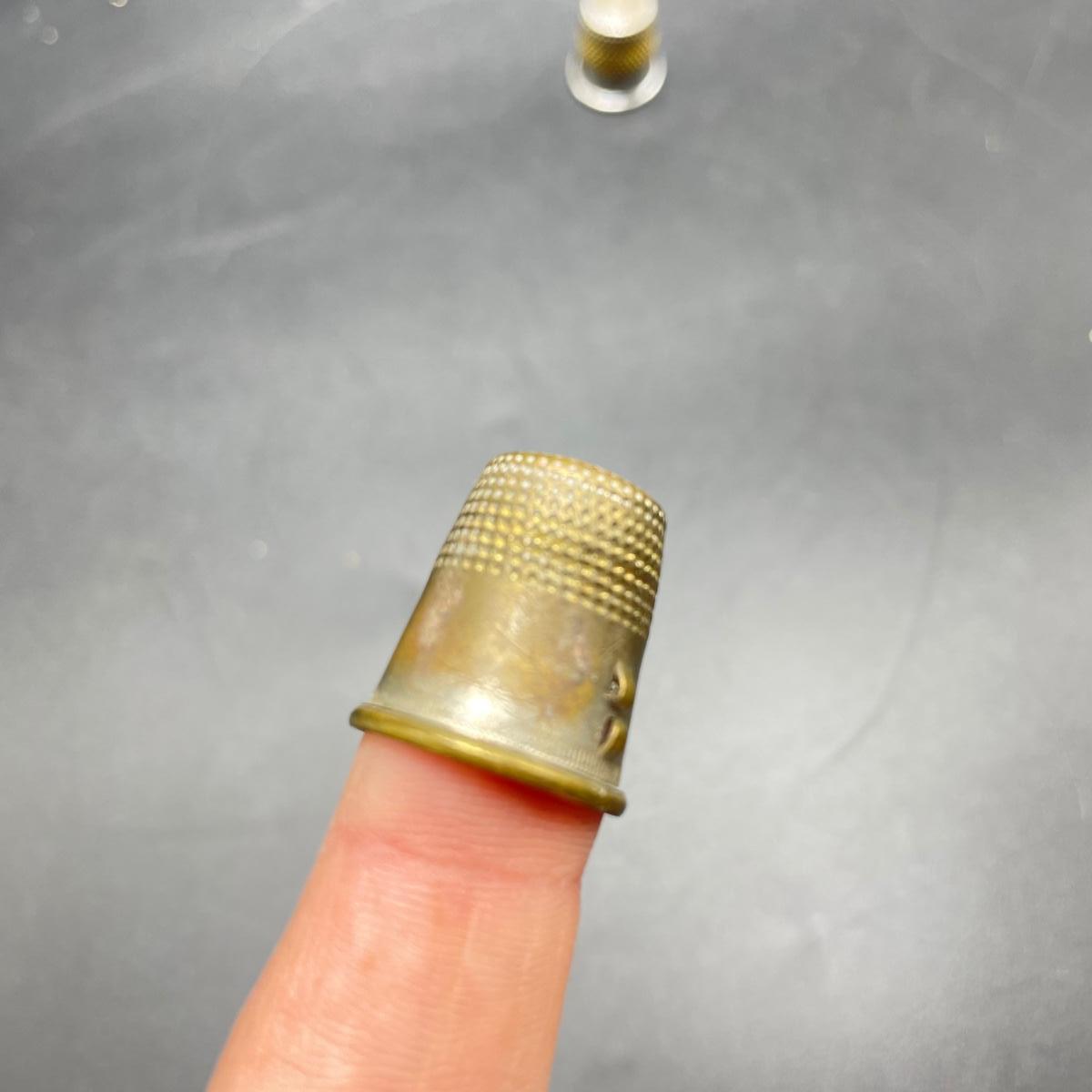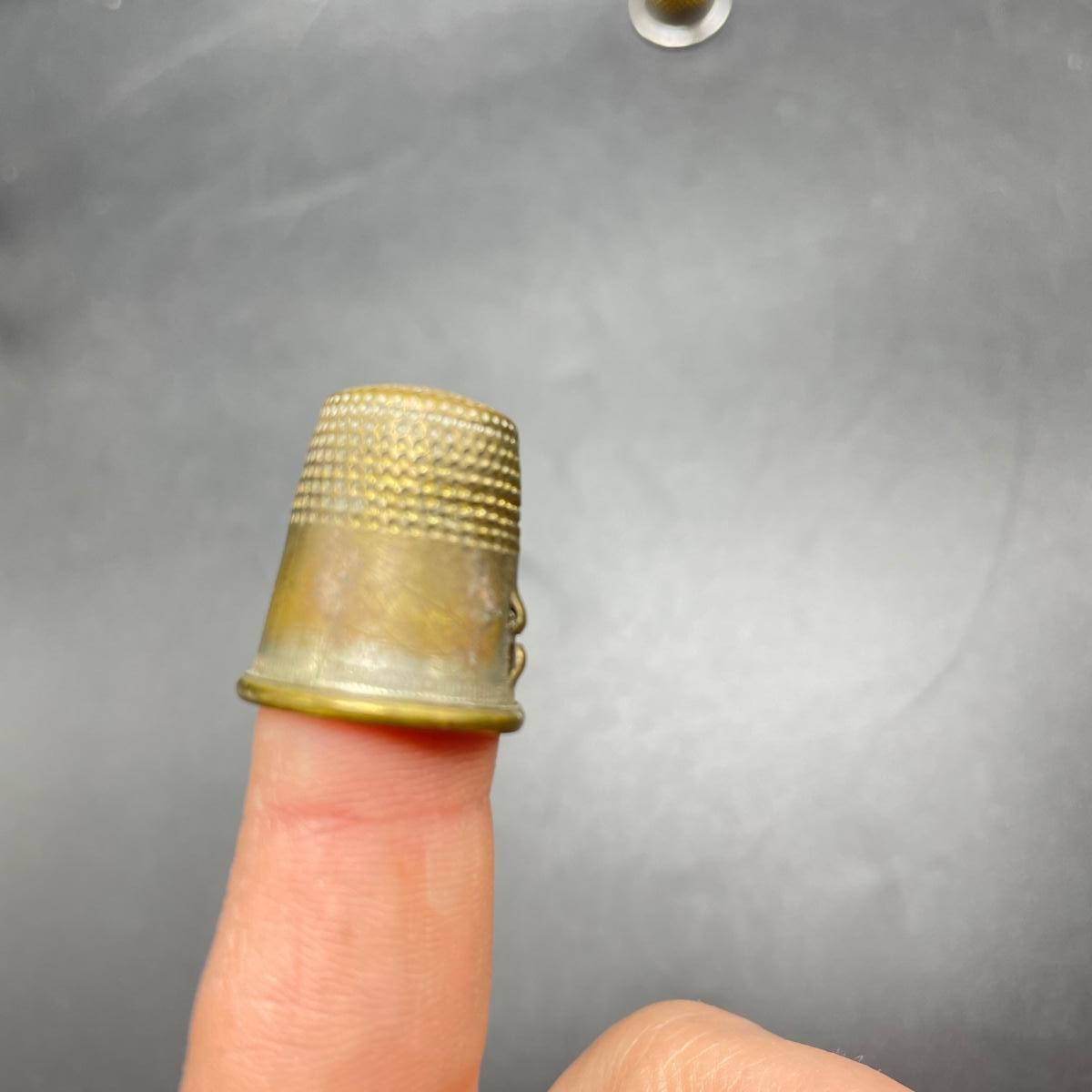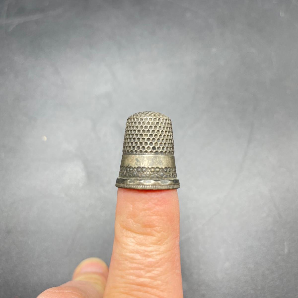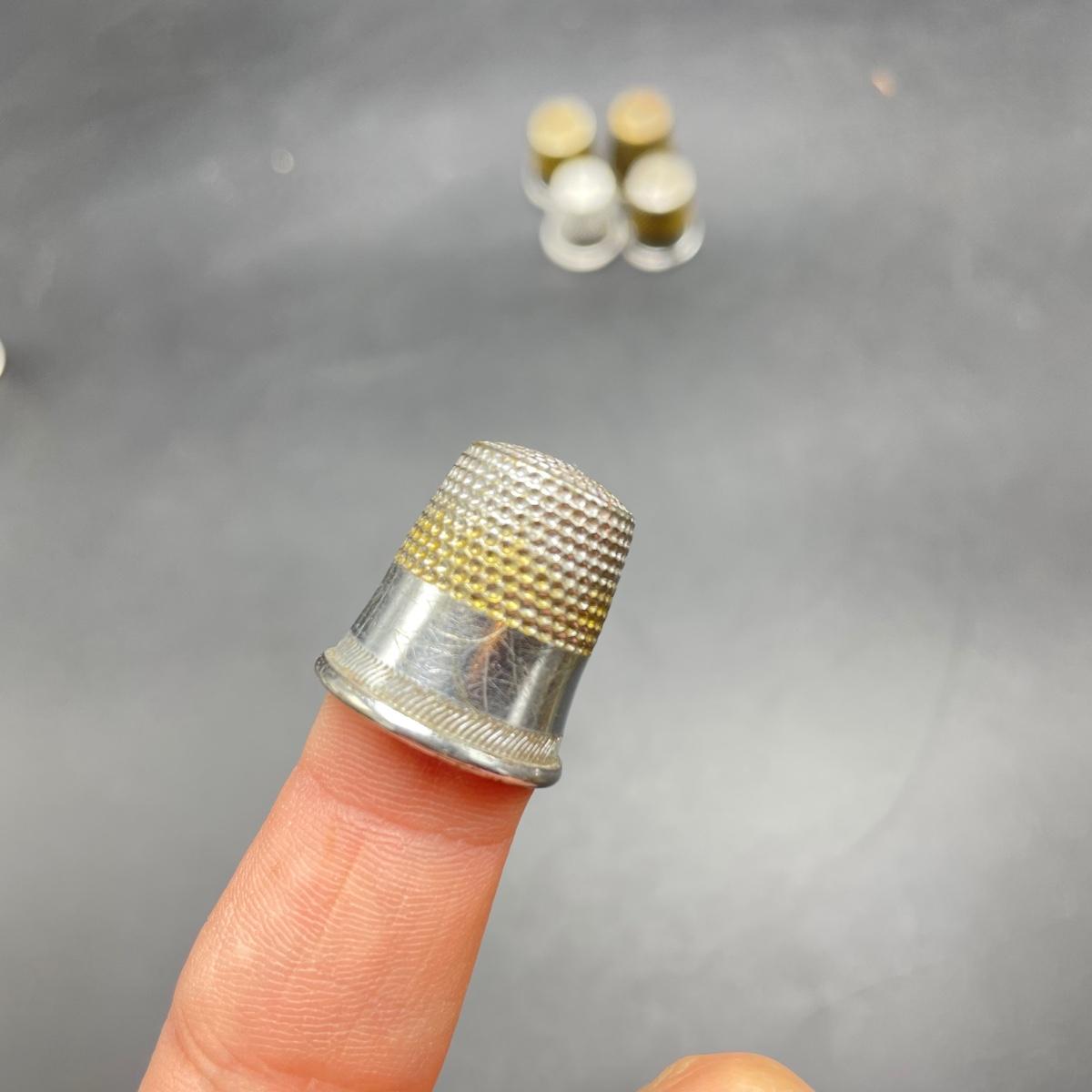 Eight vintage thimbles. Two have advertisements: Real Silk Hosiery Mills, Indianapolis, Indiana and Sweet Rose Flour. One smallest thimble is unmarked, and the last five are sized. One 10, three 11, and one 12. See images. Shipping available.