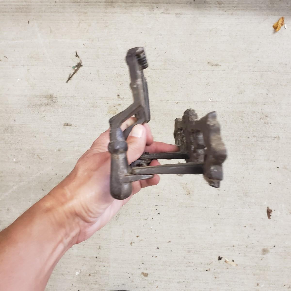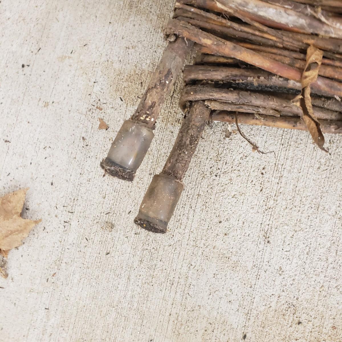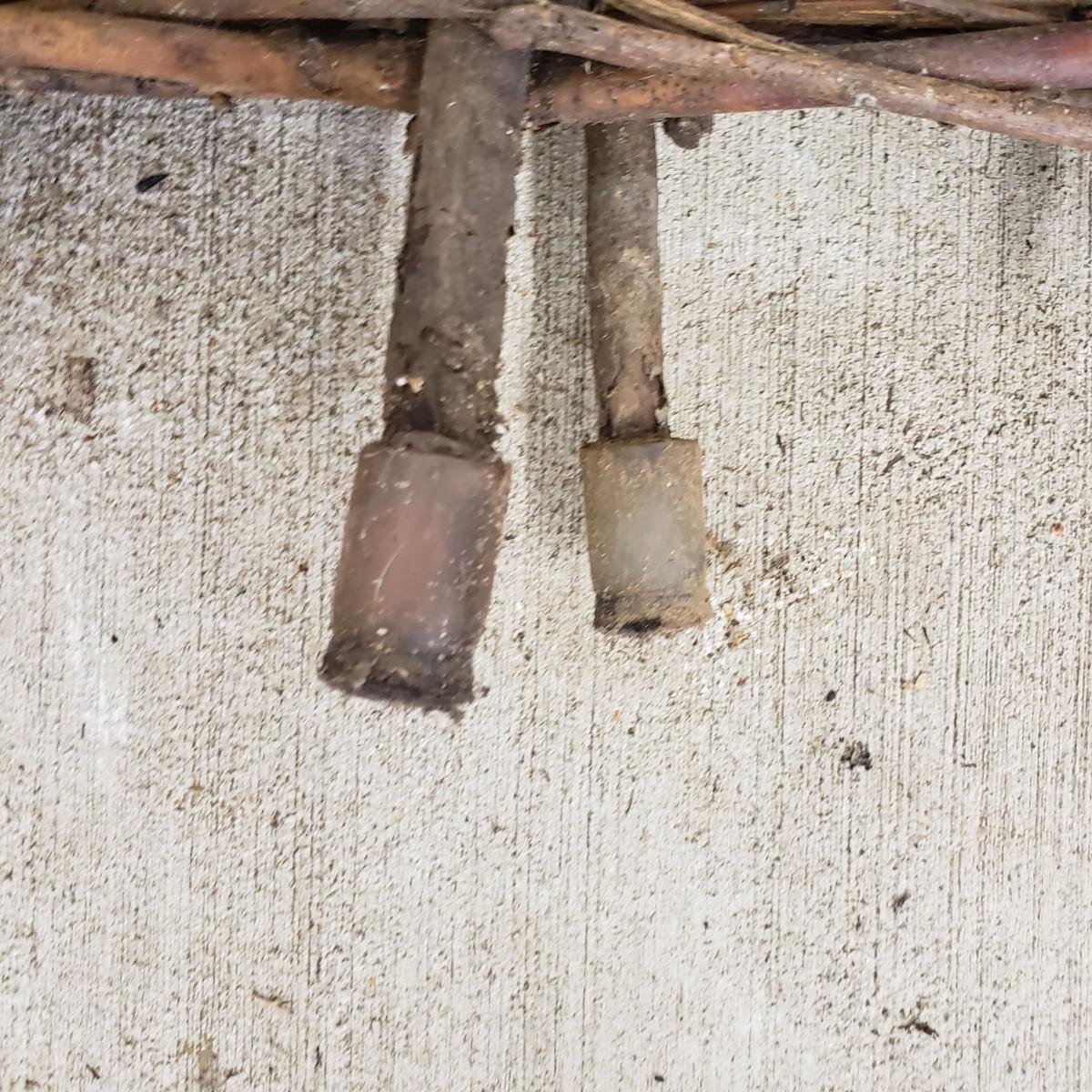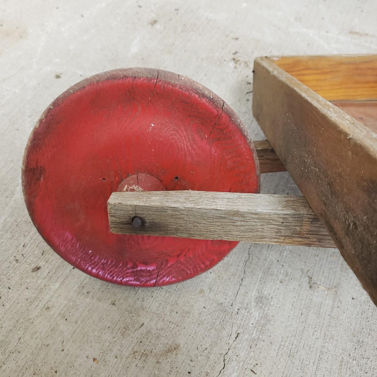 This useful and decorative garden art contains a cast iron three hook rack measuring 7" x 3". The vintage wood wheelbarrow would look great in a flower arrangement. The eight willow edgers have been well loved. Each piece has three rubber covered knobs, see pictures. Each edging measures 39" x 13".