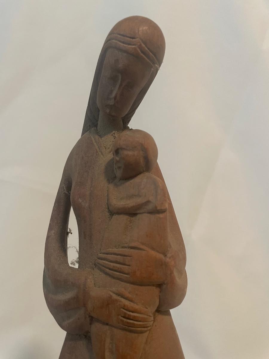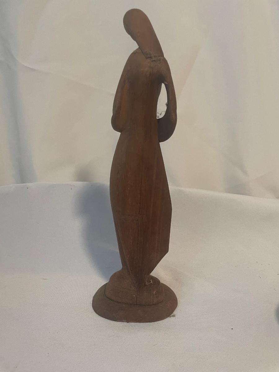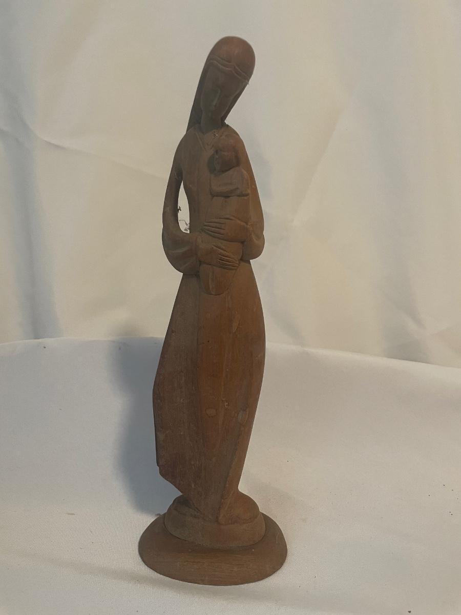 The statue of a woman holding a baby stands 12.5” tall.