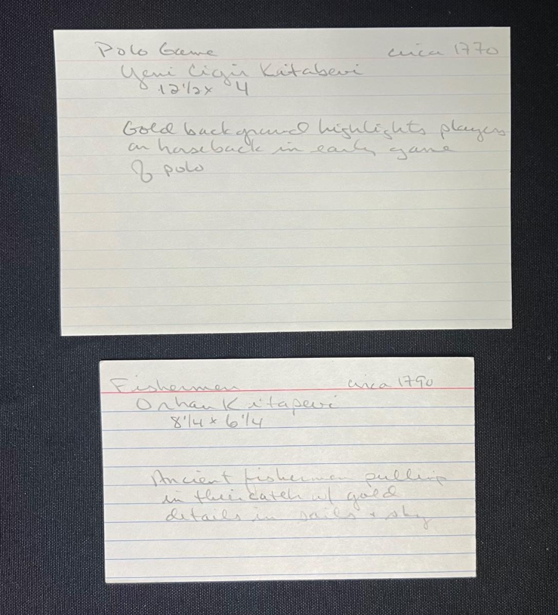 Pre-auction estimate: $500-1000. Two pieces. Includes "Fishermen" and "Polo Game." Measurement of largest: 12.5" x 4". [SG]