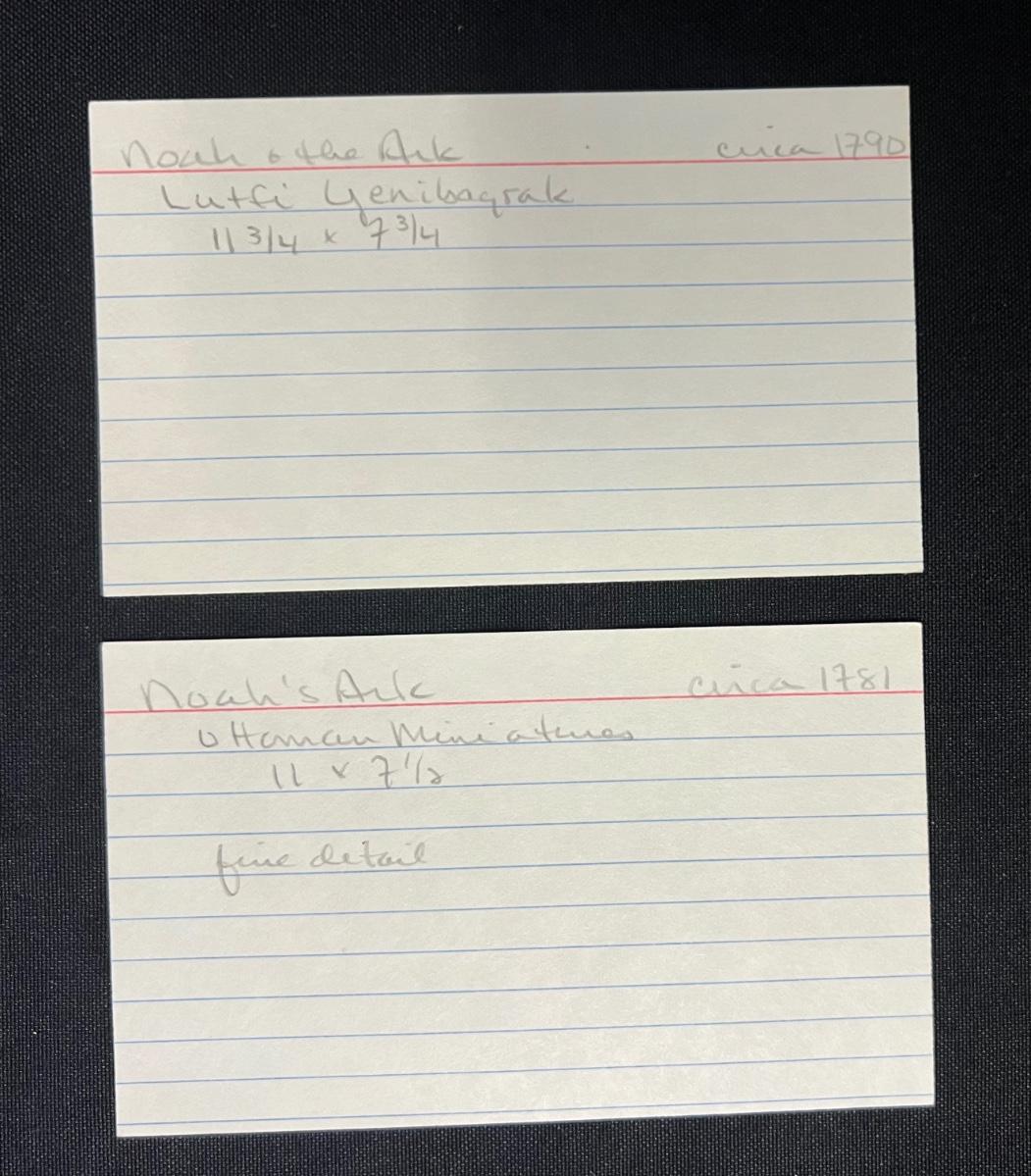 Pre-auction estimate: $500-1000. Two pieces. Includes "Noah and the Ark," and "Noah's Ark." Measurement of largest: 12" x 8". [SG]