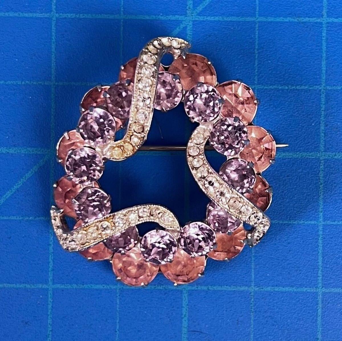 EISENBERG Pink Lavender Rhinestone Pin Brooch Vintage Marked