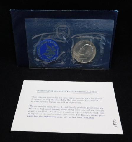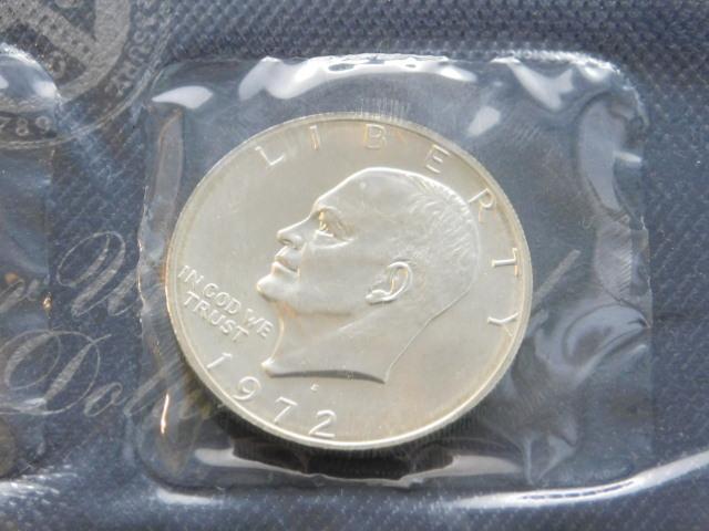 Eisenhower 1972 Silver Dollar Uncirculated in Seal Wrap with Envelope