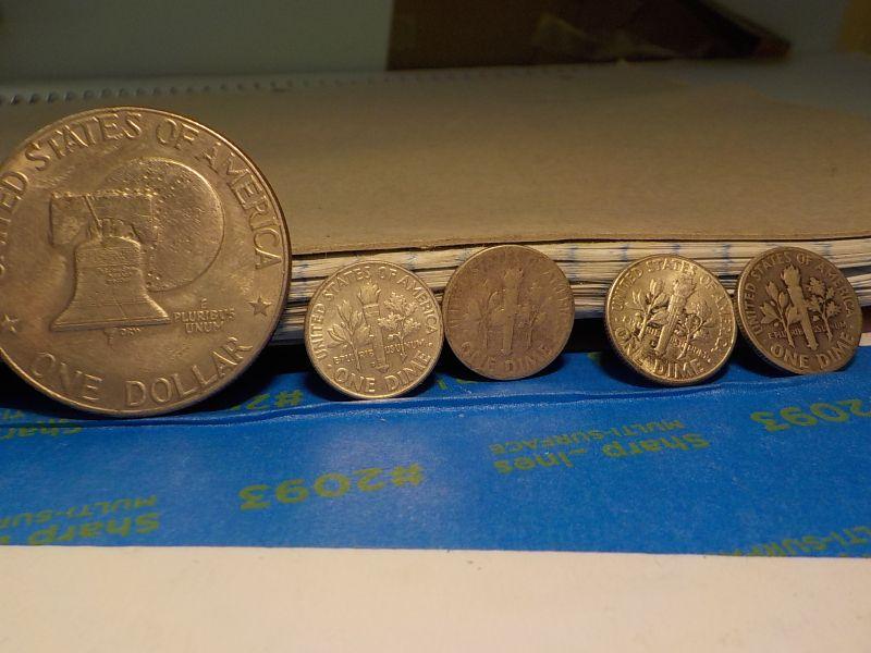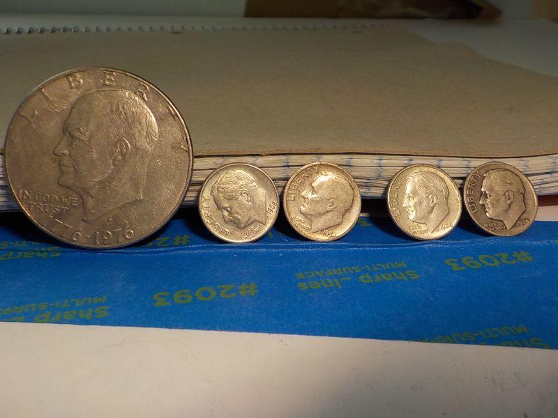 Eisenhower Centennial dollar and 4 Roosevelt dimes.