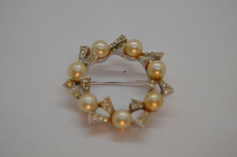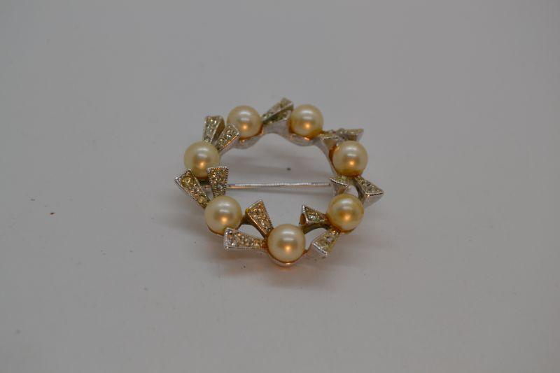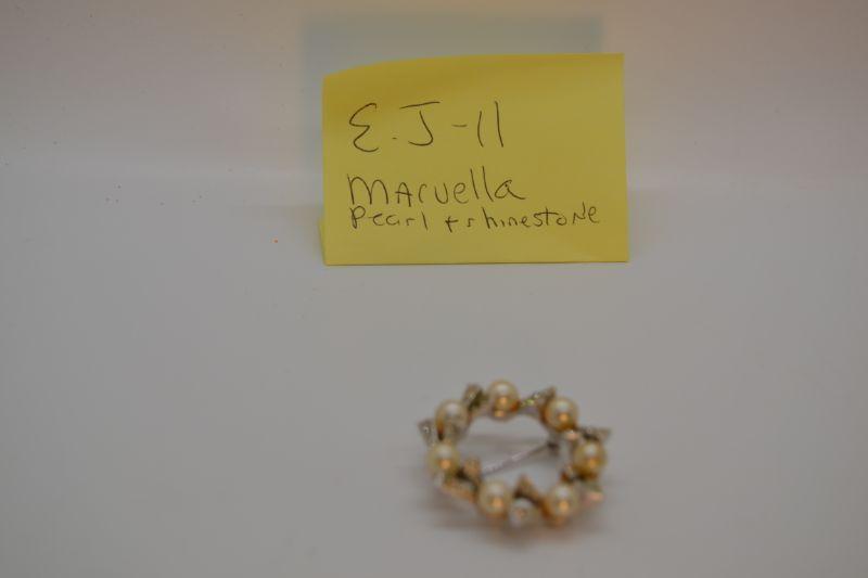 E-J-11 Marvella Pearl + Rhinestone Brooch