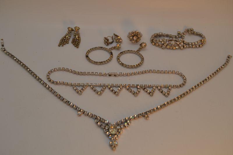 3 Earrings, 1 Bracelet, 2 14" Chokers.. These Rhinestone pieces are vintage. Like old but not super old, which makes them awesome!