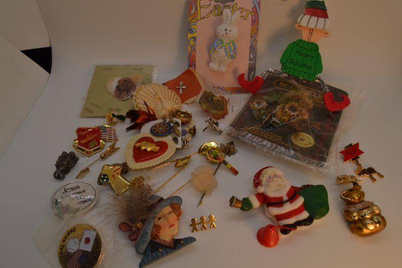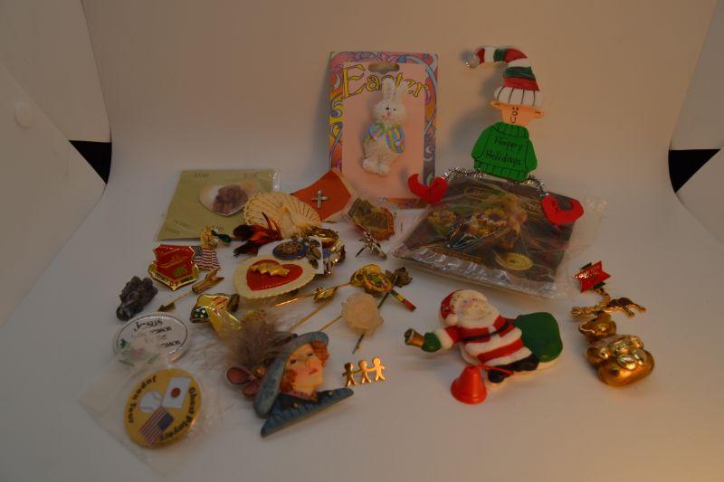 Assorted novelty pins. This Elf doesn't go on the shelf!