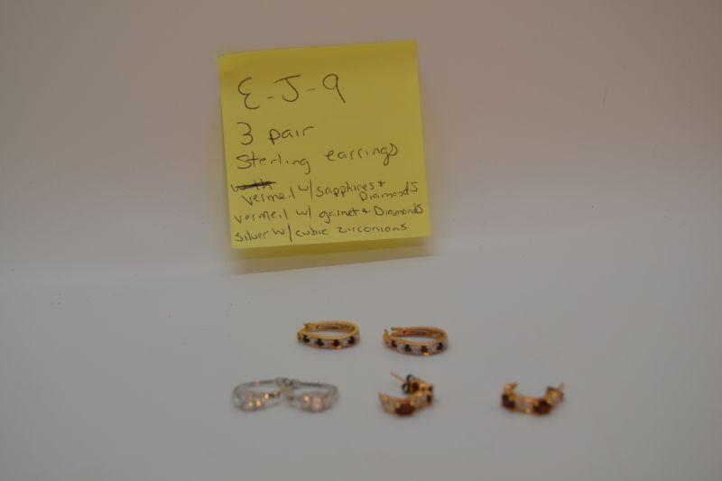 Vermeil W/Sapphires+Diamonds, Vermeil W/Garnet+Diamonds, Silver W/Cubic Zirconia's. These are so pretty its like hanging a Picasso painting from your ear lobes.