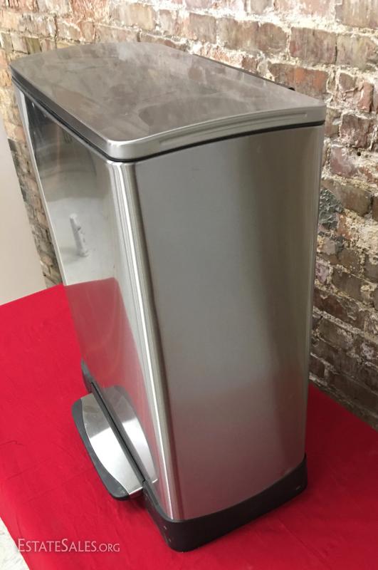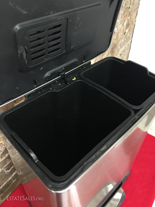 2 bin can stainless steel measures 25" tall, 20" wide and 12" front to back. In excellent condition.