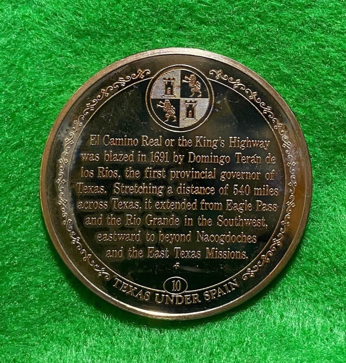 El Camino Real, Old San Antonio Road 1691, Franklin Mint, Coin, Medal, Exonumia, Medallion, Numismatic, Token, Texas Texana, Spain, Spanish