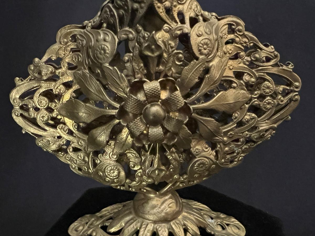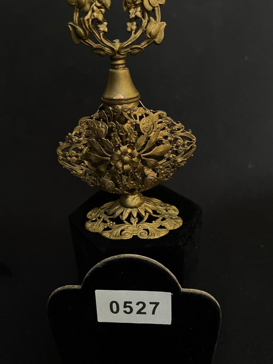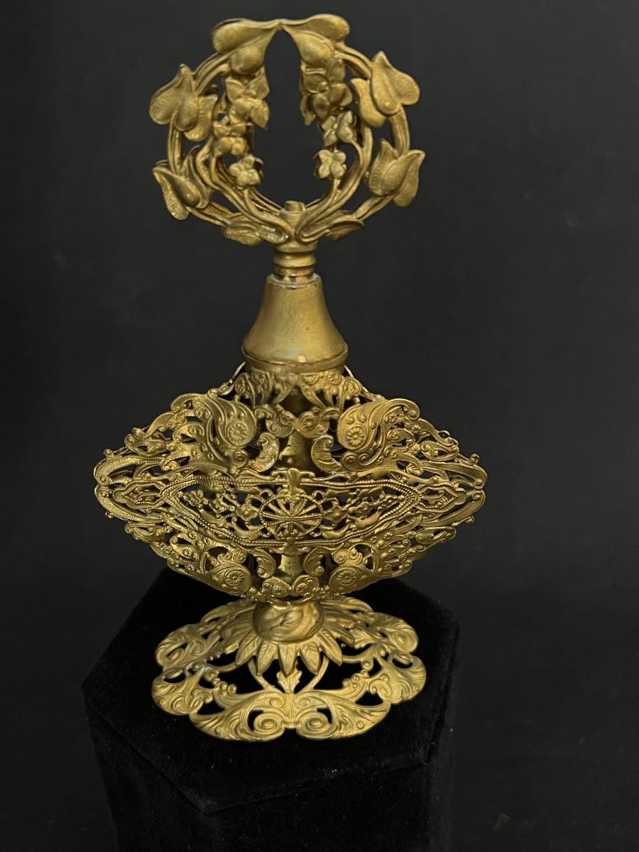 Elaborate Vintage Filigree Brass Framed Perfume Bottle