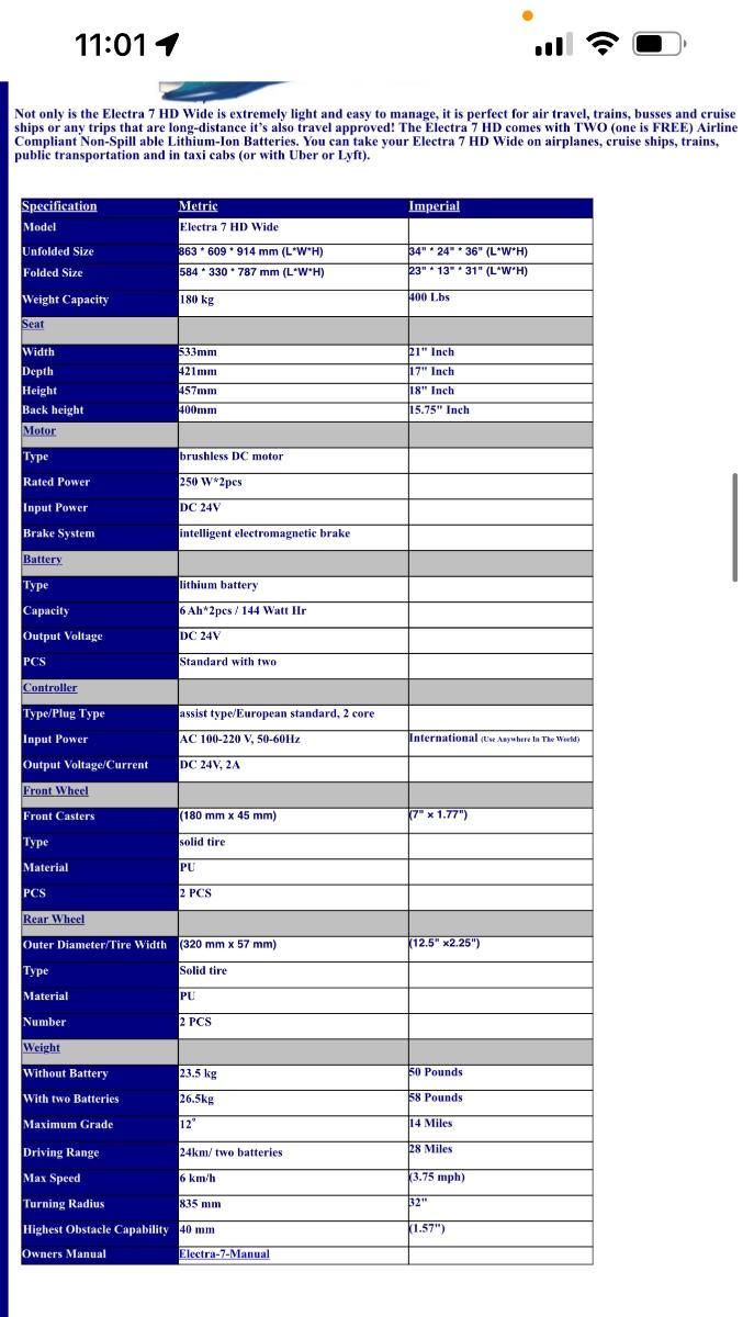 Specs sheet in photos.