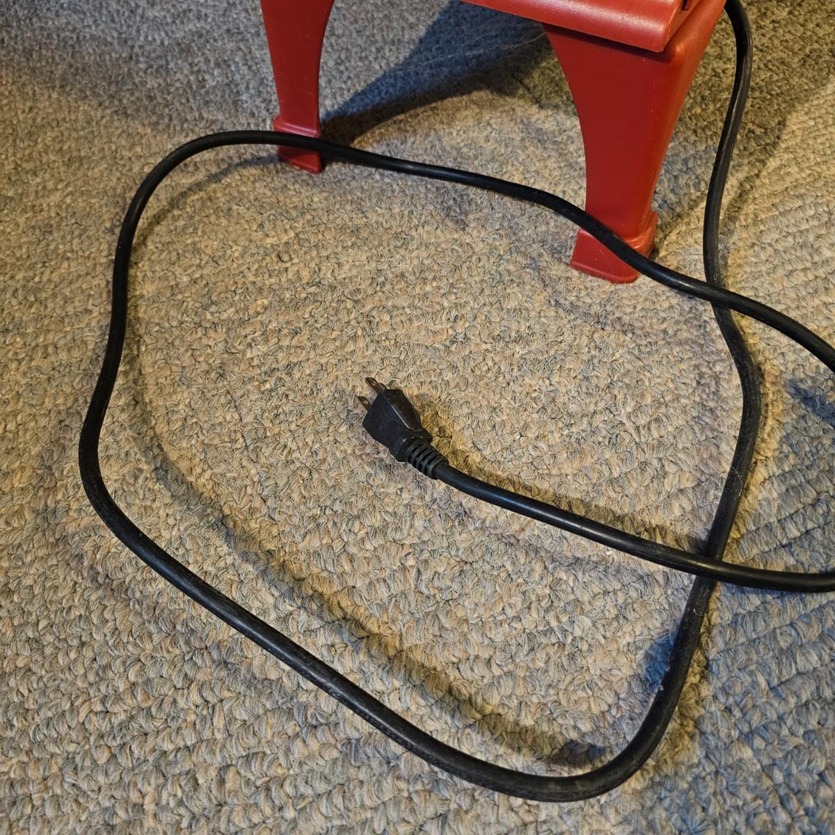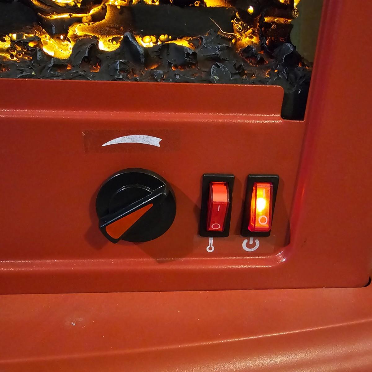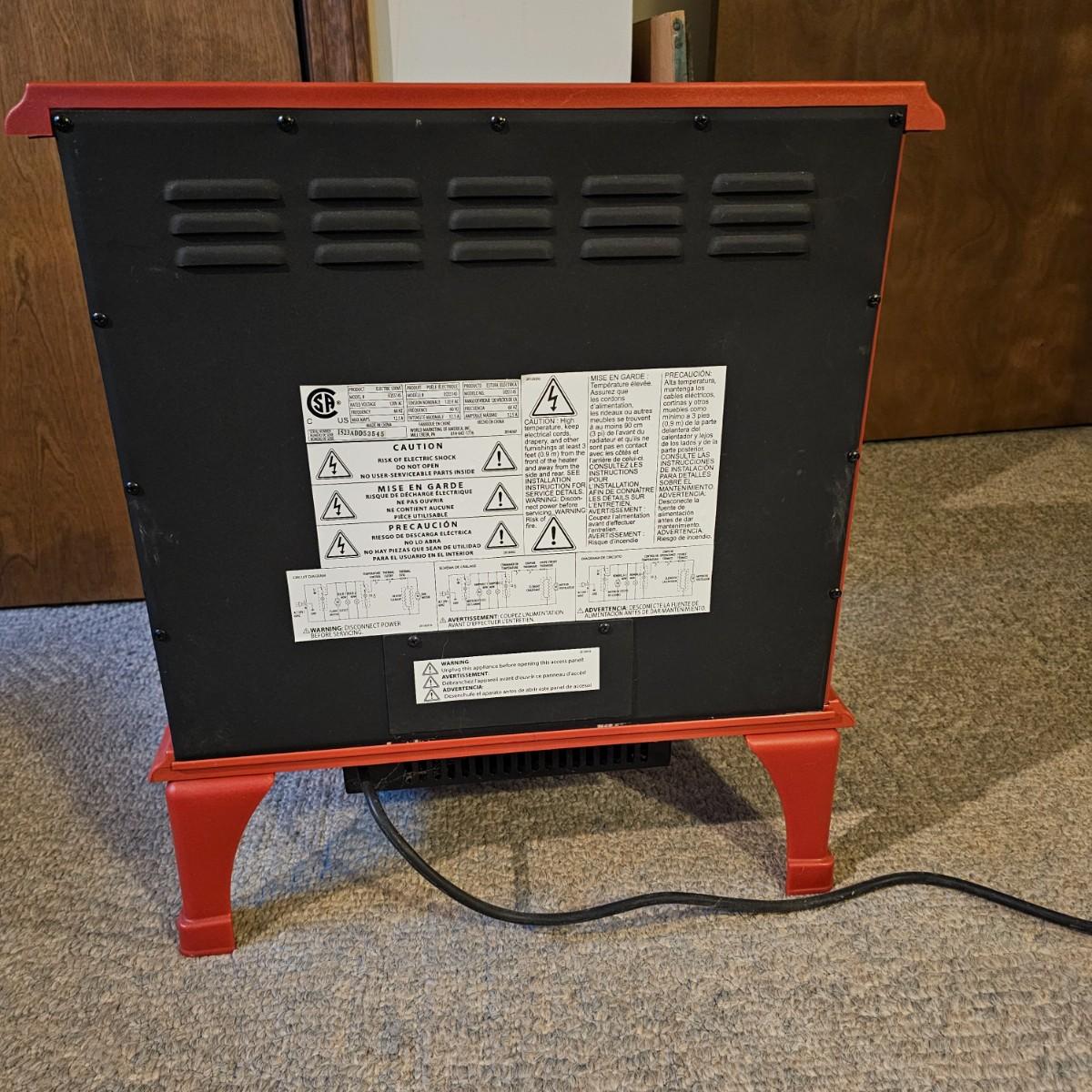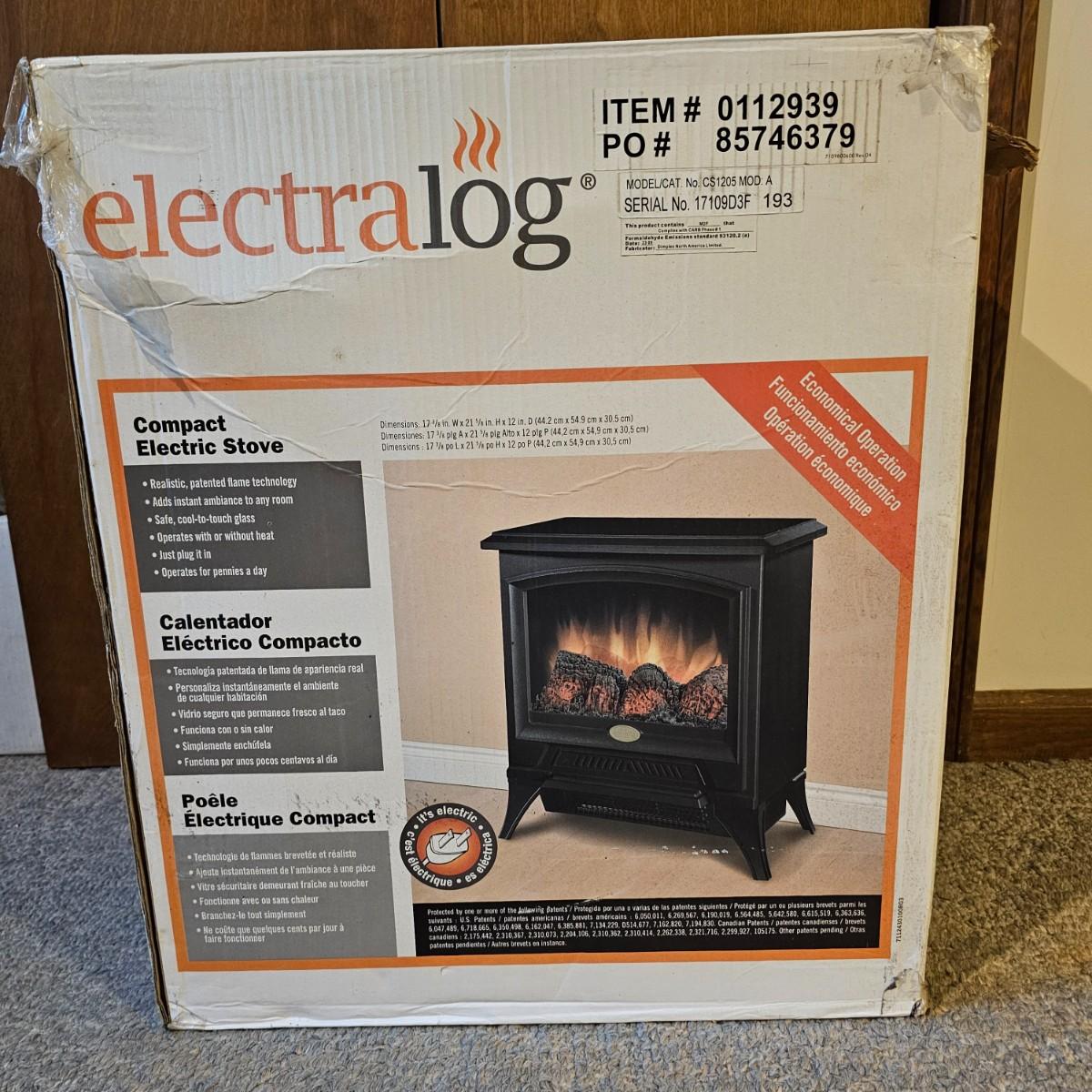 Add ambience and warmth to any room with this compact electric stove heater by Electralog. Has realistic flames, can be used with or without heat. Dark red plastic frame and case, item measures 17"'x 12" x 21.5"H. Stove powered on when plugged in. See photos for details. Local pickup only.