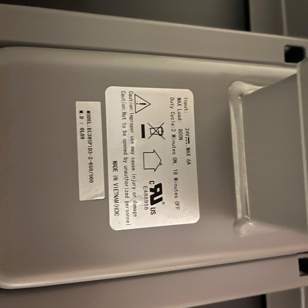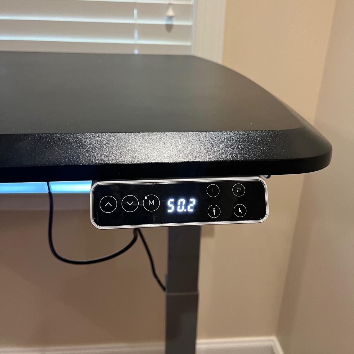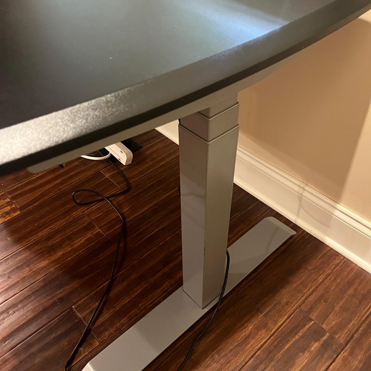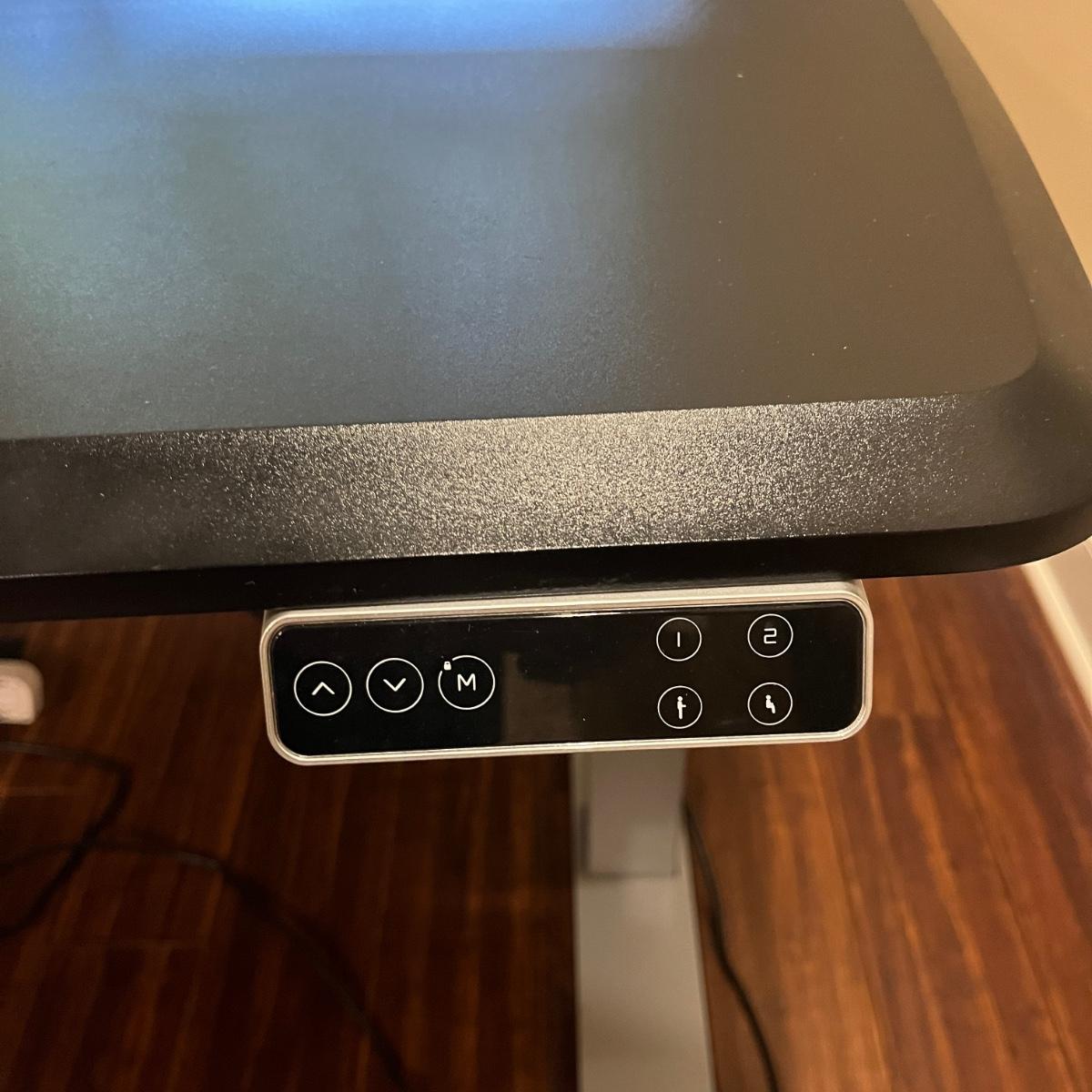 This Loctek electric adjustable height standing desk has a wireless charger and USB lugs with three electric plugs. Desk measures 60” x 31” with a 26”- 50” adjustable height.